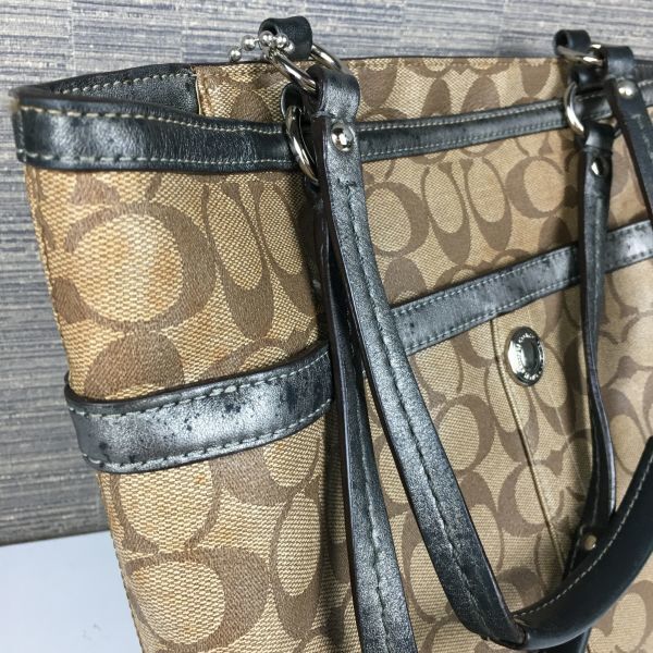 袋付き!COACH/コーチ 肩掛け/トートバッグ 茶 シグネチャー ロゴチャーム付き 管NO.B14-27