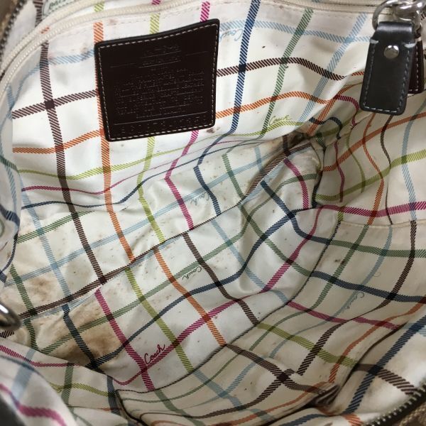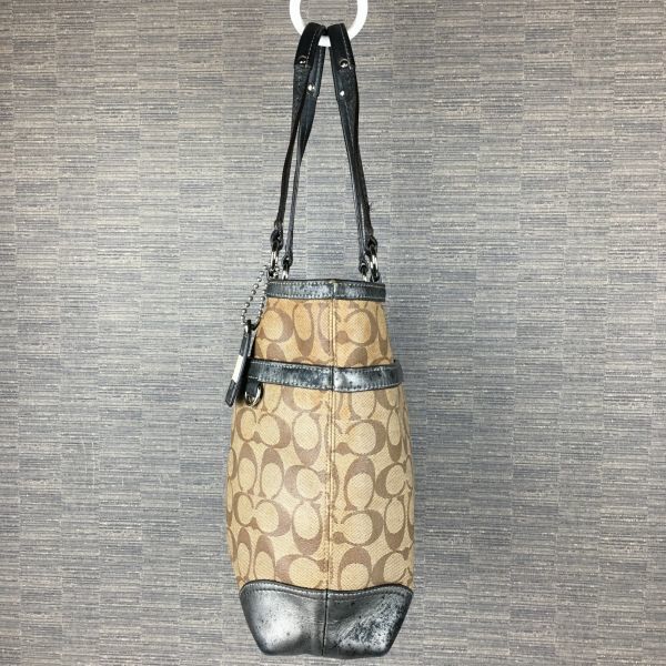 袋付き!COACH/コーチ 肩掛け/トートバッグ 茶 シグネチャー ロゴチャーム付き 管NO.B14-27