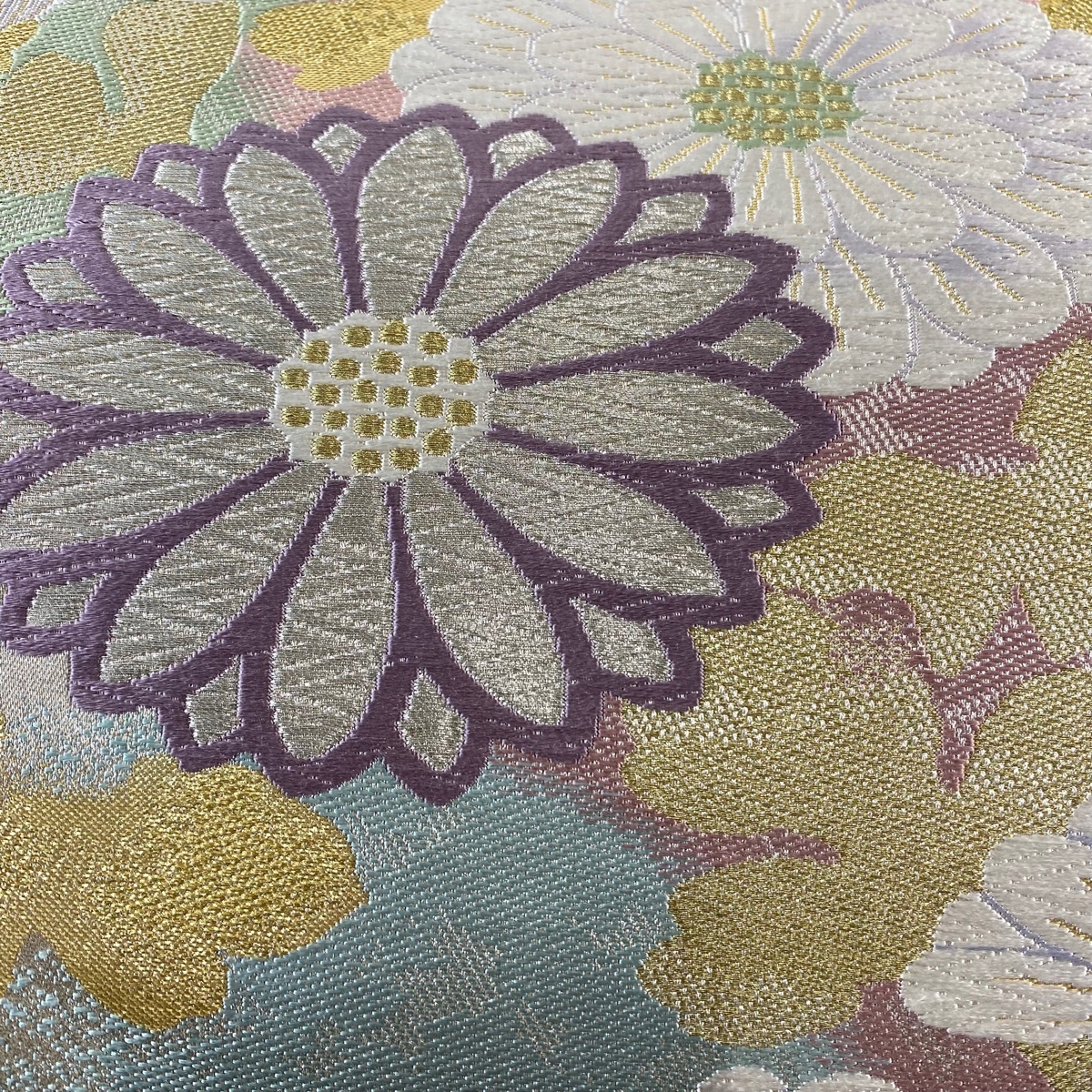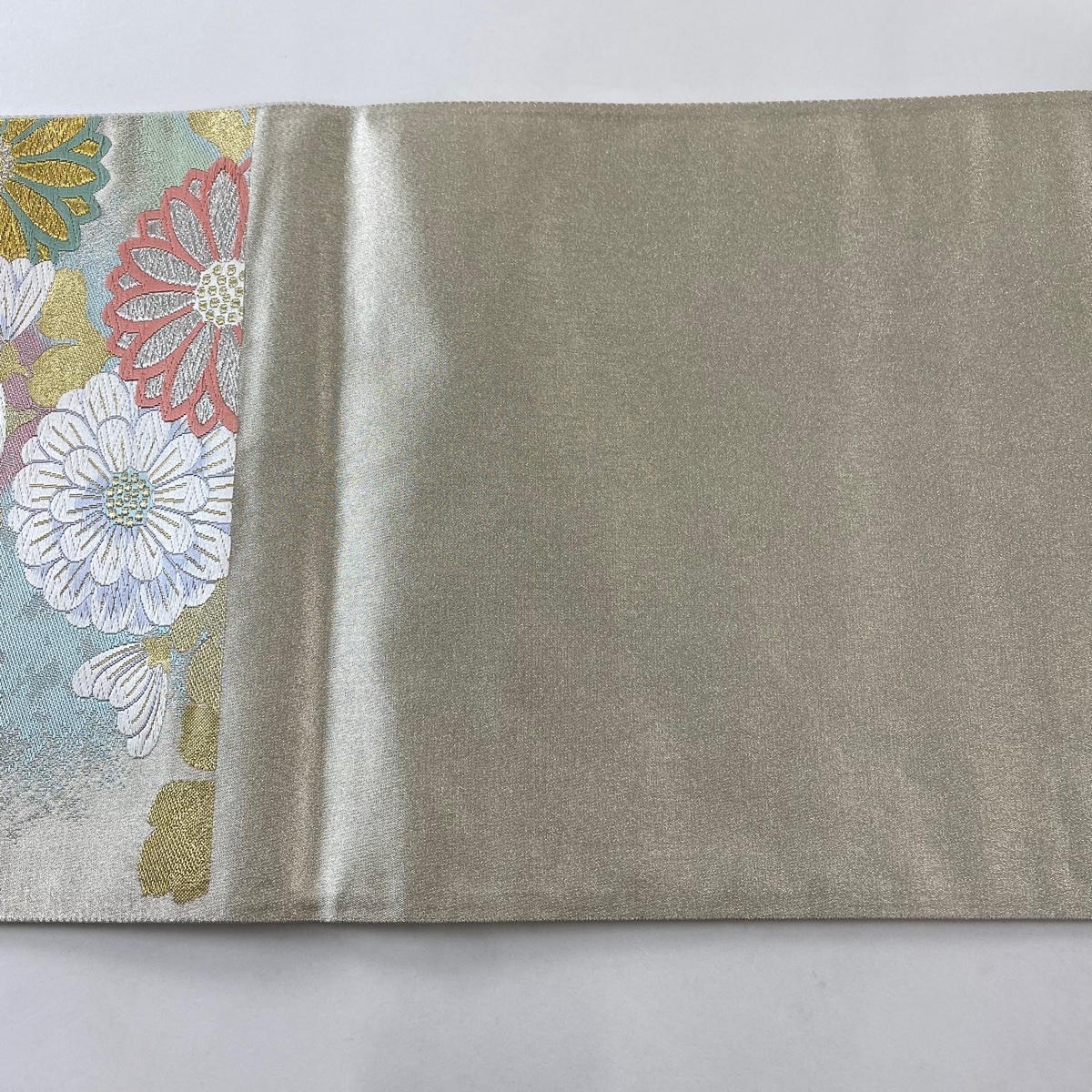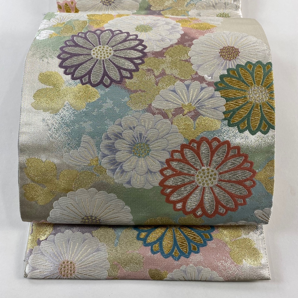 | 袋帯 名品 菊 金銀糸 箔 薄緑 六通 正絹 【中古】 |