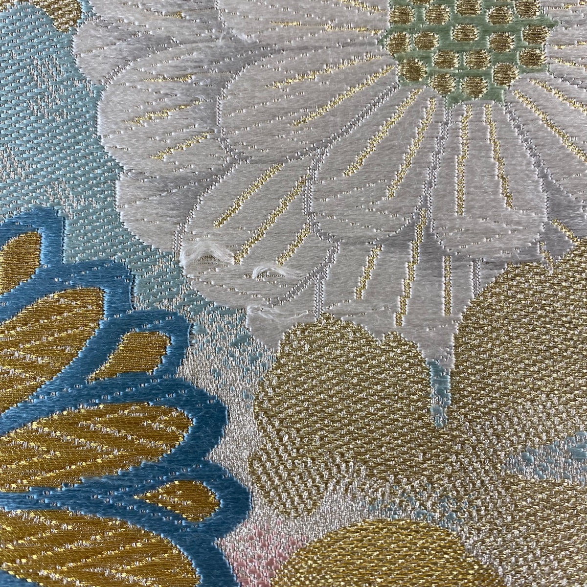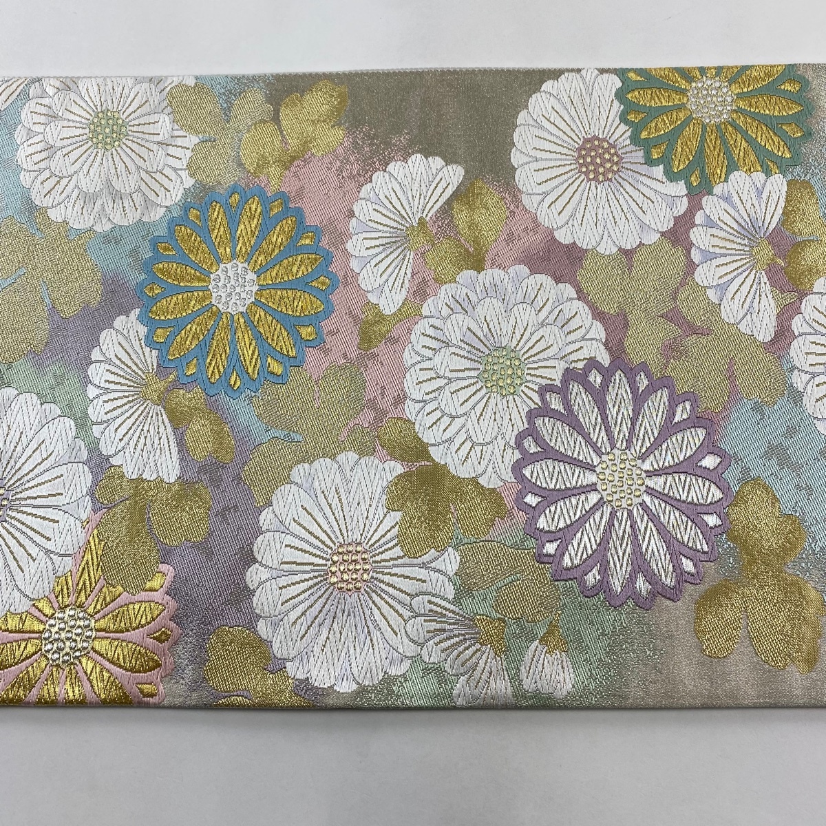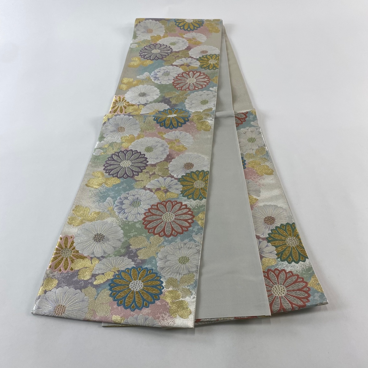 | 袋帯 名品 菊 金銀糸 箔 薄緑 六通 正絹 【中古】 |