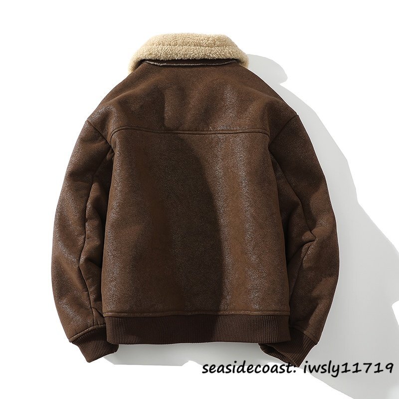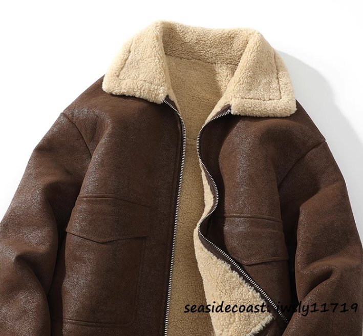 入手困難◆上品 ムートンコート メンズ フライトジャケット 超防寒 裏ボア 厚手 ライダース 毛皮 ファーコート バイクウエア グレー 3XL