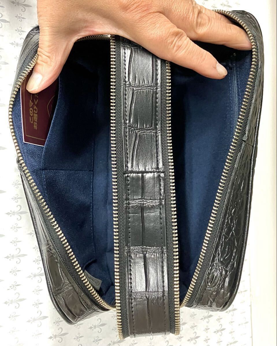 国産、日本製のクロコダイルワニ革使いWファスナー