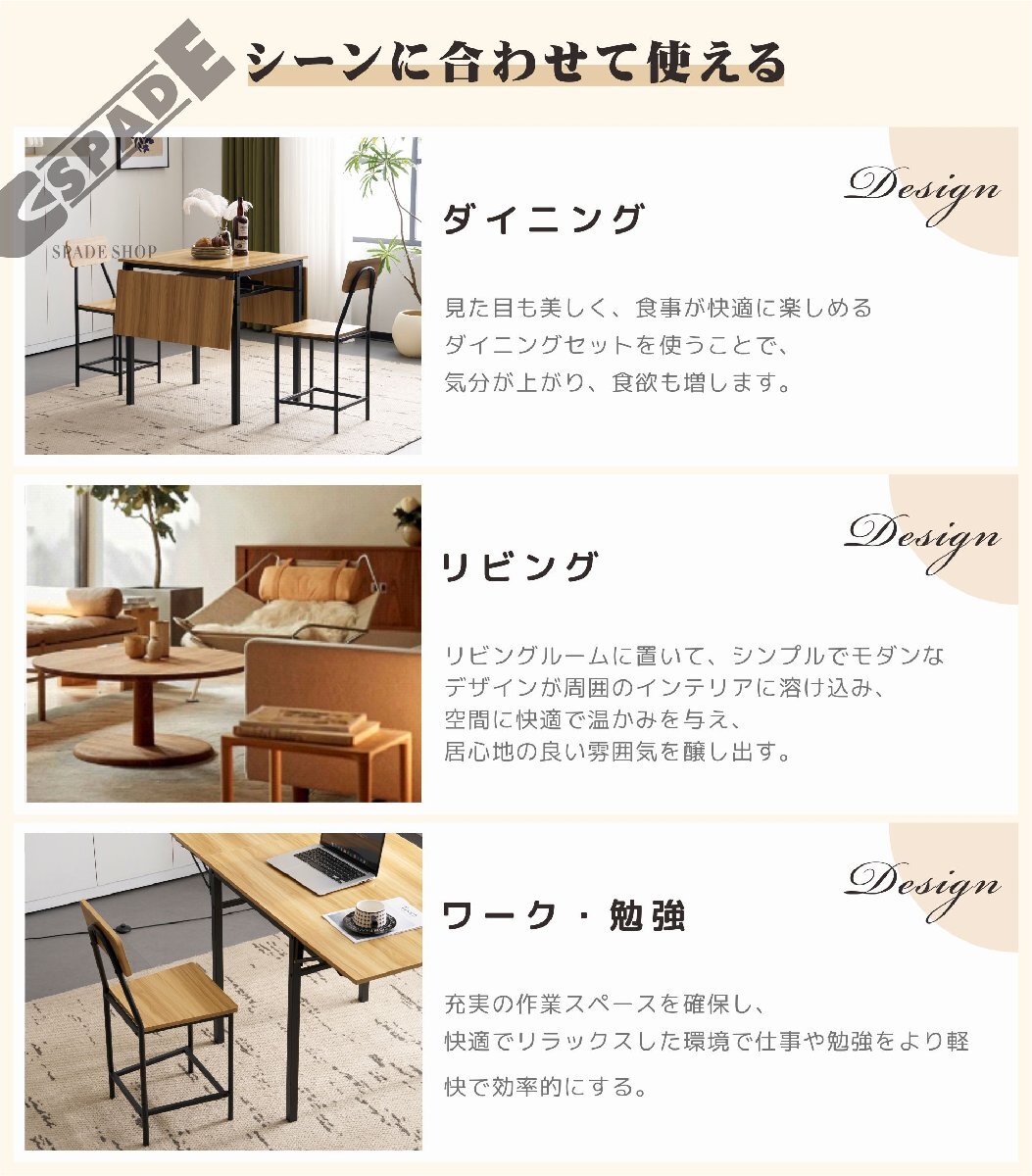 • 【洗練されたデザイン】シンプルで上質なデザインが、温かみと快適さを兼ね備えたダイニングスペースを実現します。 折りたたみ式のテーブルは、スペースを有効活用できるだけでなく、来客時にも柔軟に対応可能です。 テーブルにマッチしたデザインの4脚セットチェアは、どんなインテリアスタイルにも馴染み、統一感のある空間を創り出します。