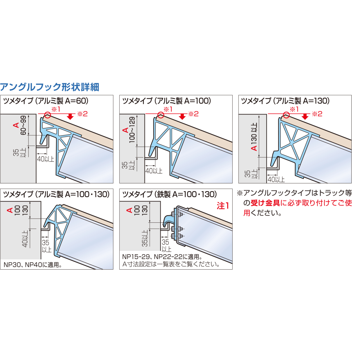 積載重量は1本あたり7.5トンです 日軽金アクト15.0トン(15.0t)木張りアングルフック全長2200mm【NP15-22】2本組 自重61kg/1本 | ||