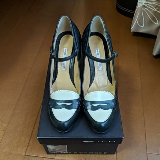 サイズは37で、幅約8cm、ヒール約7、5cmです。
