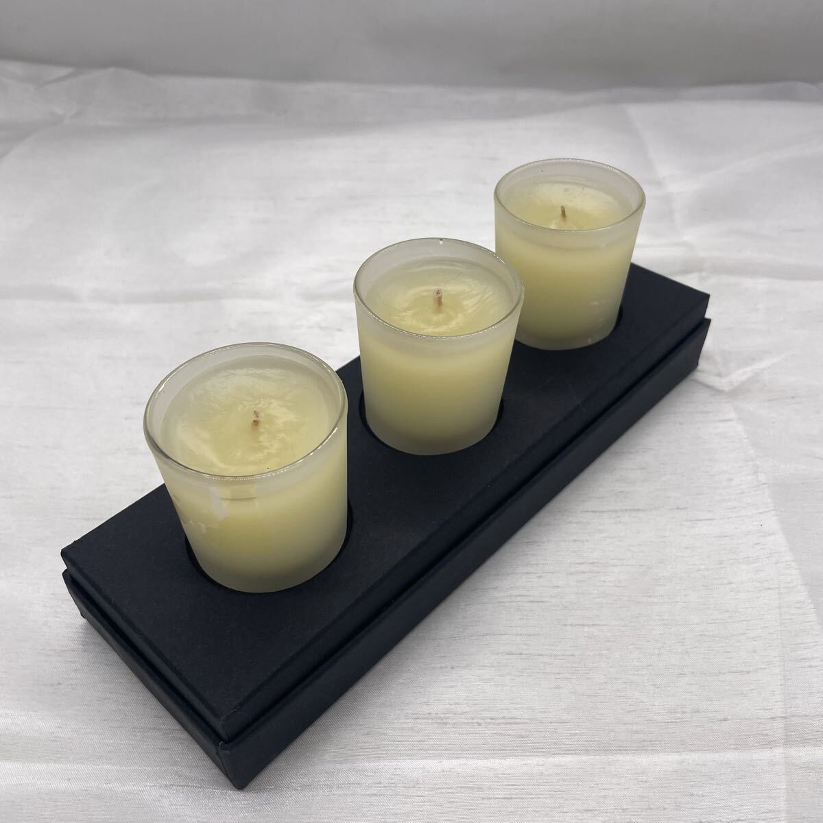 上品なアイボリーカラーのキャンドルに、シャネルのココマークがあしらわれたデザイン。