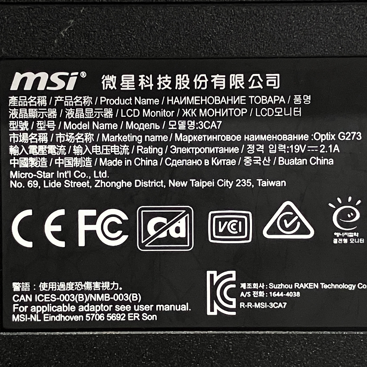 | メーカー名 | msi | 型番 | Optix G273 |