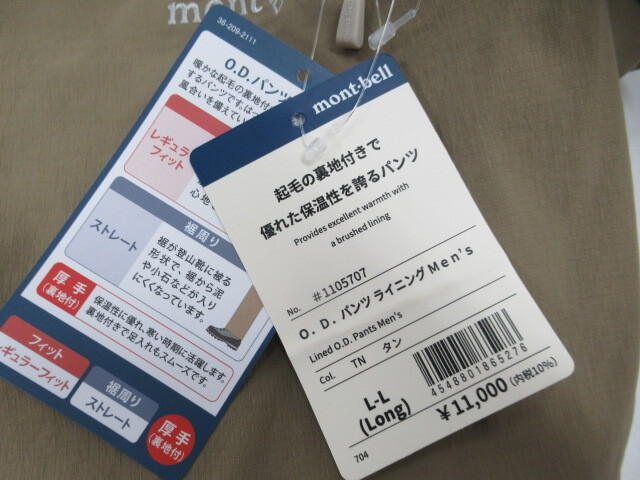 【美品】mont-bell O.D.パンツ ライニング メンズ 登山 1105707 アウトドアウェア 039883002