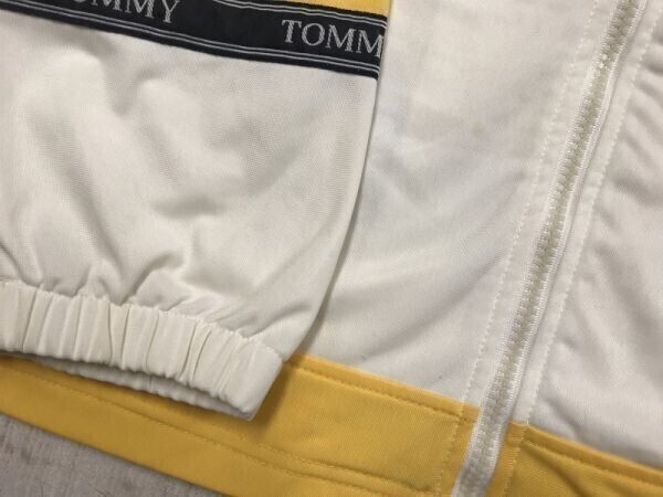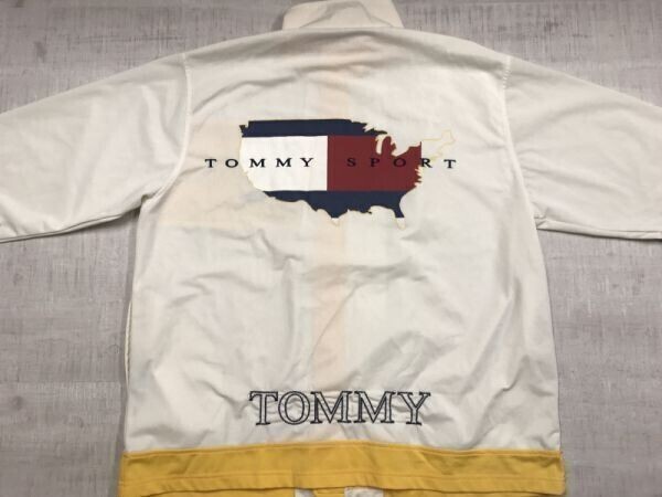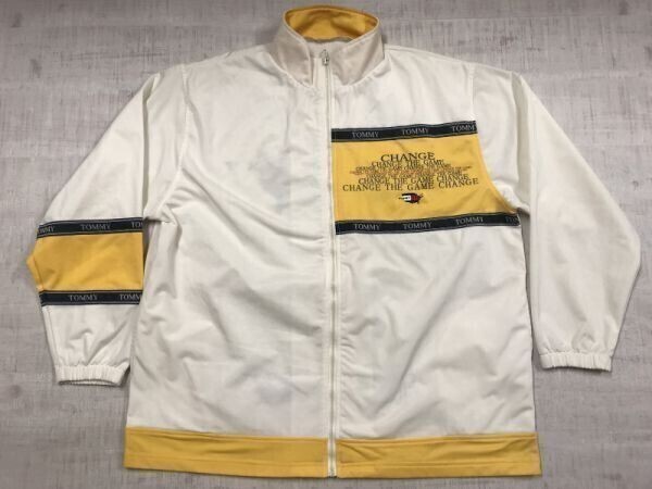 トミー TOMMY レトロ オールド ストリート 古着 マップ柄 刺繍 配色切替 ハイネック ジップアップ ジャケット メンズ 裏起毛 白/黄色 です。