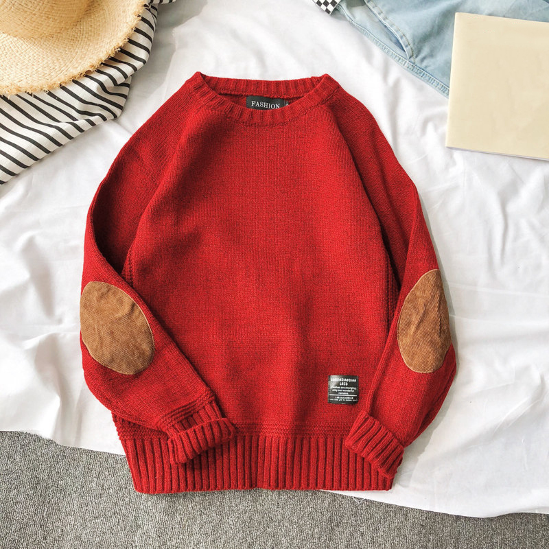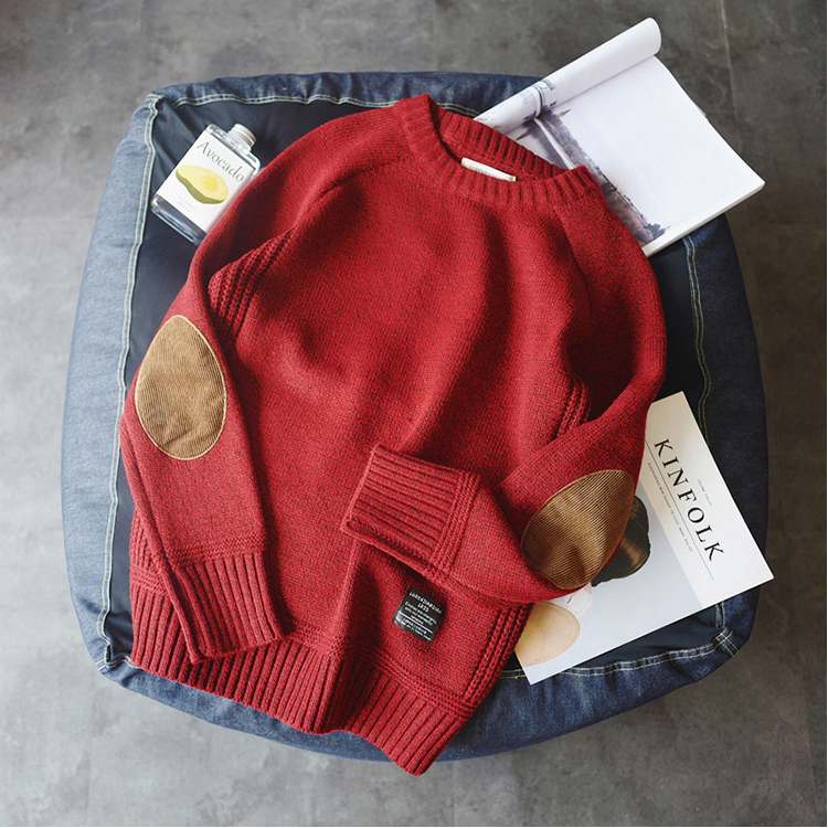 トップス おしゃれ カジュアル クルーネック ニット セーター メンズトップス レッド 3XL