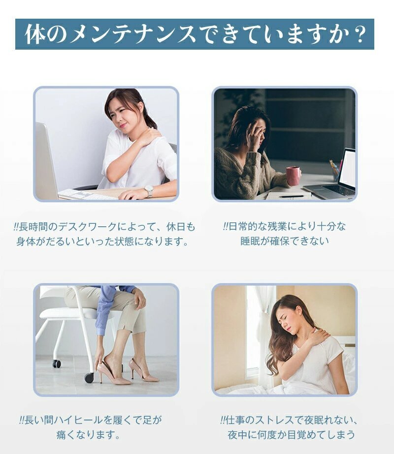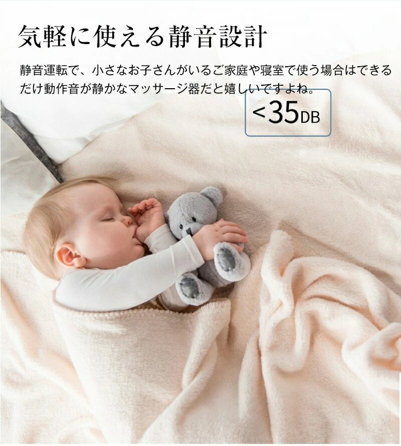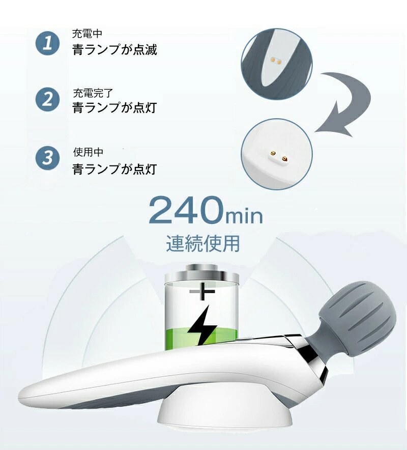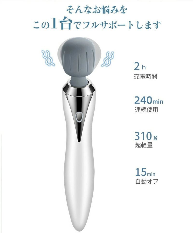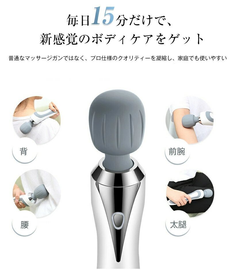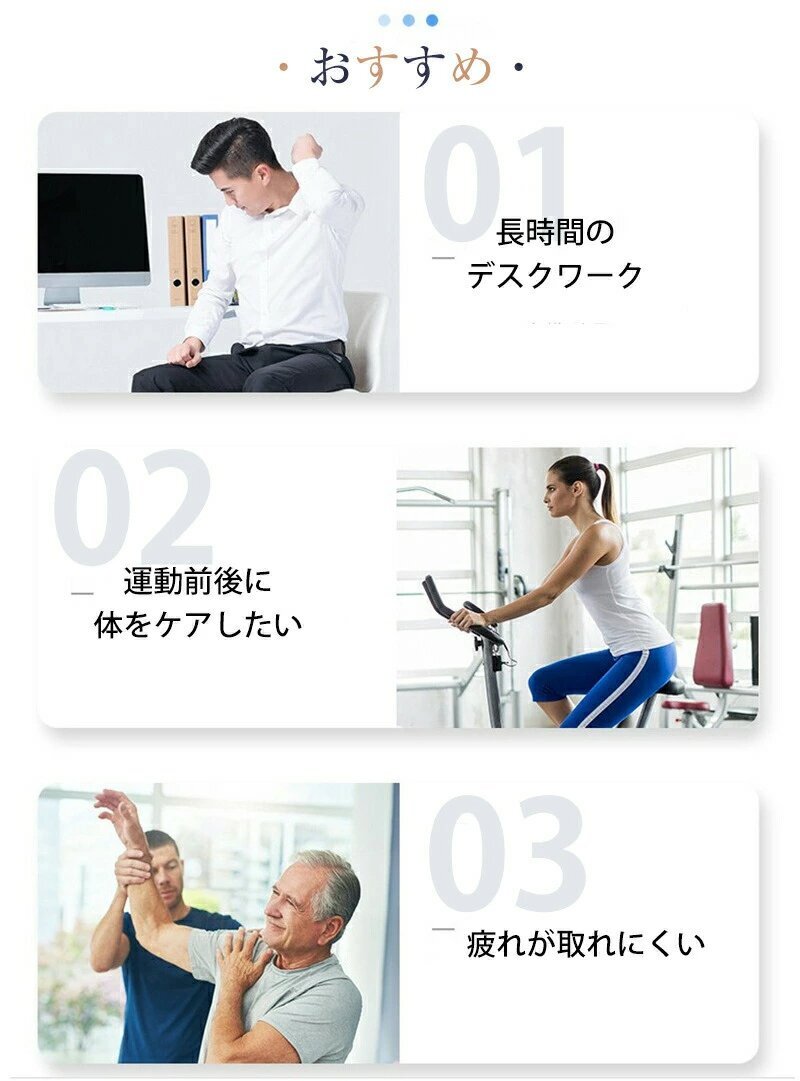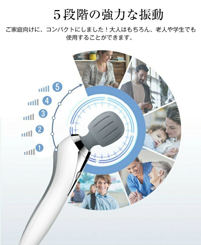 商品名ハンディマッサージャー商品コメントアームの曲線が体にフィット。手の届きにくいところでも簡単指圧。いろんな箇所をほぐせます。 整体師さんの施術メニューにも使われるほどなので、かなり気になるアイテムです。 POINT.1コンパクトなデザイン 超ミニなデザインなので、老人でも、片手で楽々いつでも気軽にハンディマッサージ。 POINT.2 5段階の強力な振動 ご家庭向けに、コンパクトにしました!大人はもちろん、老人や学生でも使用することができます。 POINT.3 IPX7防水設計 安全&耐久性 防水設計だから、濡れても安心です。 POINT.4 気軽に使える静音設計 静音運転で、小さなお子さんがいるご家庭や寝室で使う場合はできる だけ動作音が静かなマッサージ器だと嬉しいですよね。 POINT.5 安心の自動オフ機能 15分間のご使用で、自動的に電源的に電源がオフになります 同一箇所への連続使用は3分以内を目安としてください。 入力DC5V-1A 消耗電力5W 材質:シリコン+ABS 重量:310g サイズ:250*50*80mmパッケージ内容本体×1 USBケーブル×1 充電ベースX1 取扱説明書×1使用上のご注意本製品は、 医療機器ではありません。 本品に異常が無いかチェックしてからお使いください。異常が見られたときは使用をしないでください。 本品をトレーニング以外の目的で使用しないでください。 違和感を感じる場合は使用をおやめください。 特定部分に長くマッサージしないでください。 幼児、未成年者、妊娠中の女性、ペースメーカー、骨折または金属製のものを体に使用しないでください。 車内では、乗客がマッサージすることができます。ただし、運転手は運転中に使用しないでください。 直射日光 蛍光灯の下 湿気の多いところには置かないでください。変質 変色の原因となります。 本品を改造したり上記の注意事項を怠った場合の事故 故障については一切責任を負いかねます。注意事項サイズ表記は手作業にて行っておりますので、 実物と若干の誤差が生じる場合がある お客様のご覧になっているモニター等により多少色が異なる場合がございます。