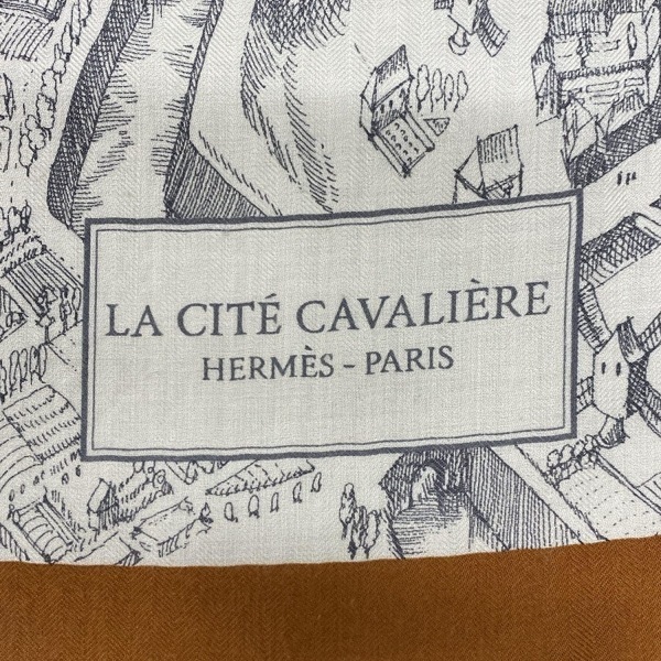 エルメス HERMES ストール(ショール) カレ140/カレ ジェアン カシミヤ、シルク 白×ブラウン LA CITE CAVALIERE 美品 マフラー