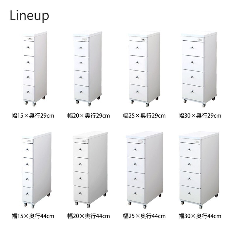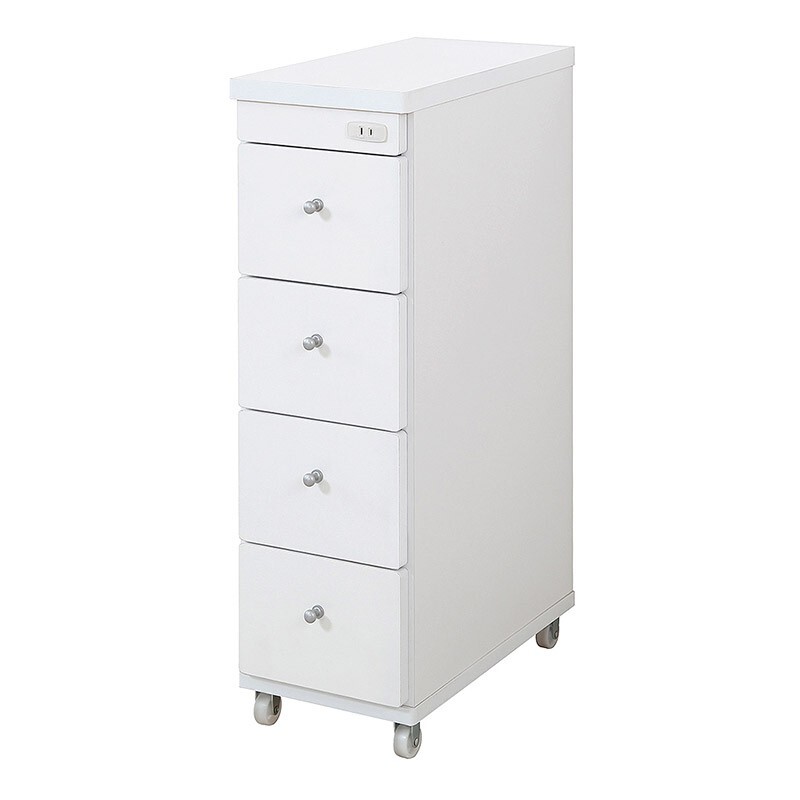 隙間収納 幅 25cm すき間 収納 棚 洗面所 キッチン 4段 引き出し ランドリー キャスターつき コンセント付き 日本製 高品質 白 ホワイト