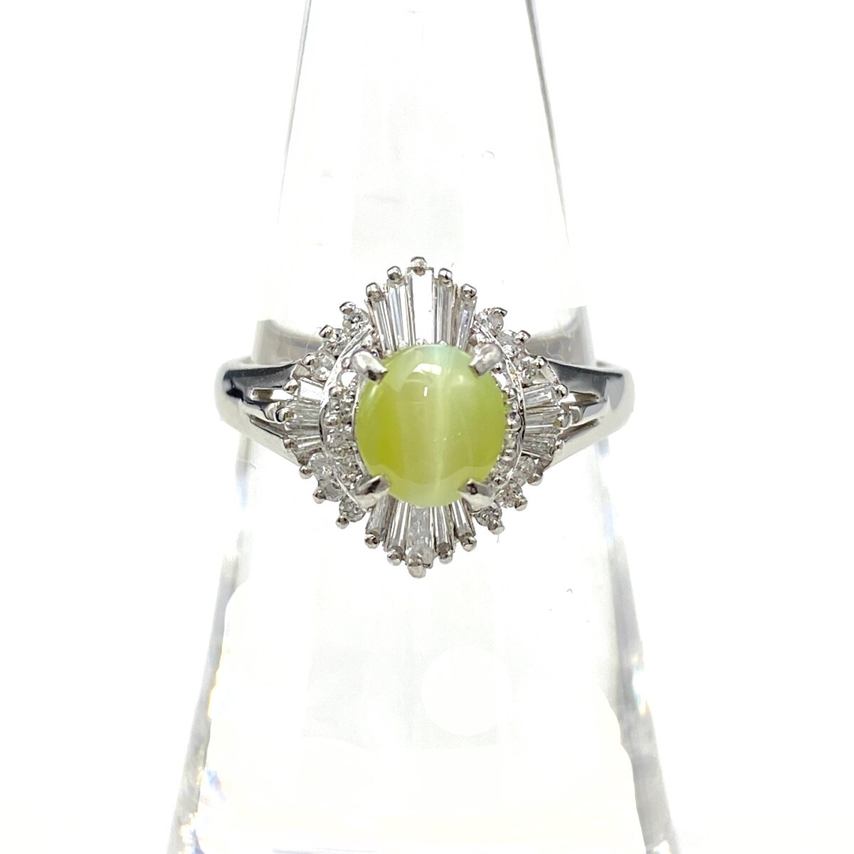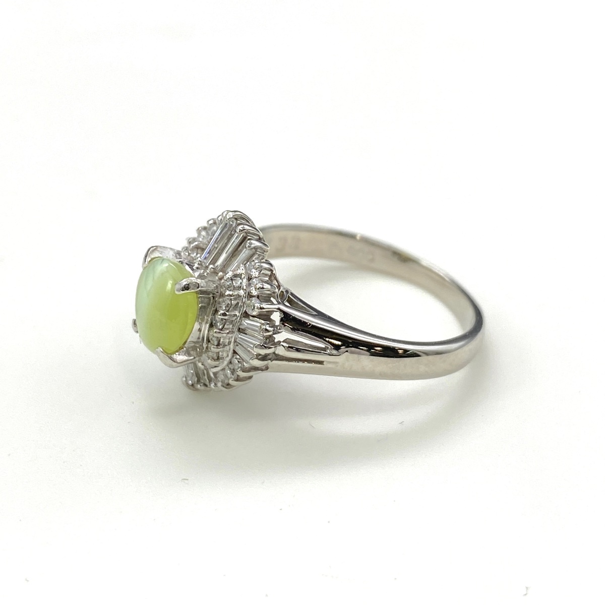 | クリソベリルキャッツアイ デザインリング プラチナ 指輪 メレダイヤ リング 12号 Pt900 クリソベリルキャッツアイ ダイヤモンド レディース 【中古】 |