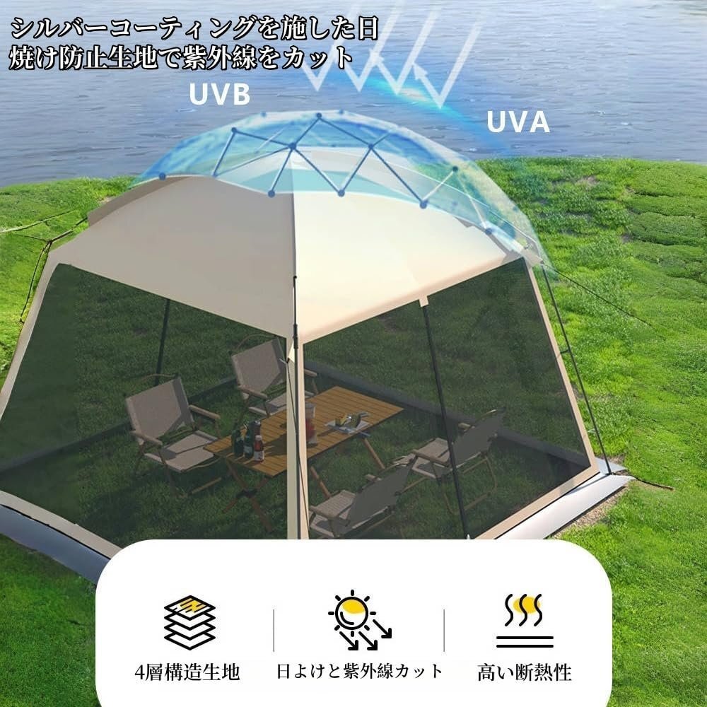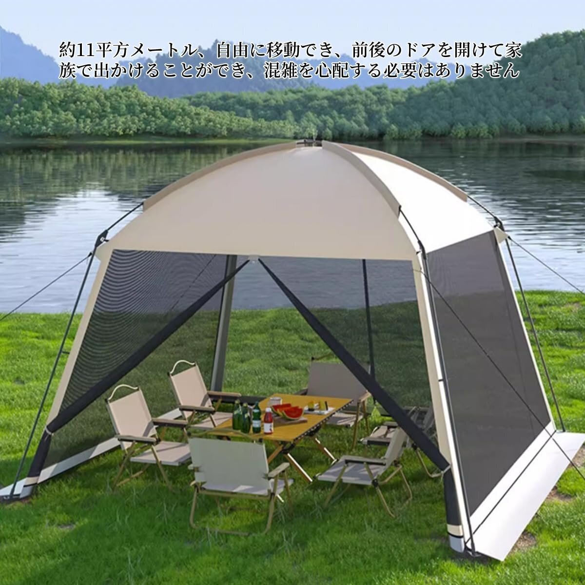 広いスペース:小サイズは4~6名、大サイズは8~10名まで利用できる広々とした空間を提供します。混雑することなく快適に動けるスペースを確保し、360°通気デザインで夏も涼しく、蒸れにくい設計です。軽量でコンパクトに収納可能で、持ち運びも簡単です。