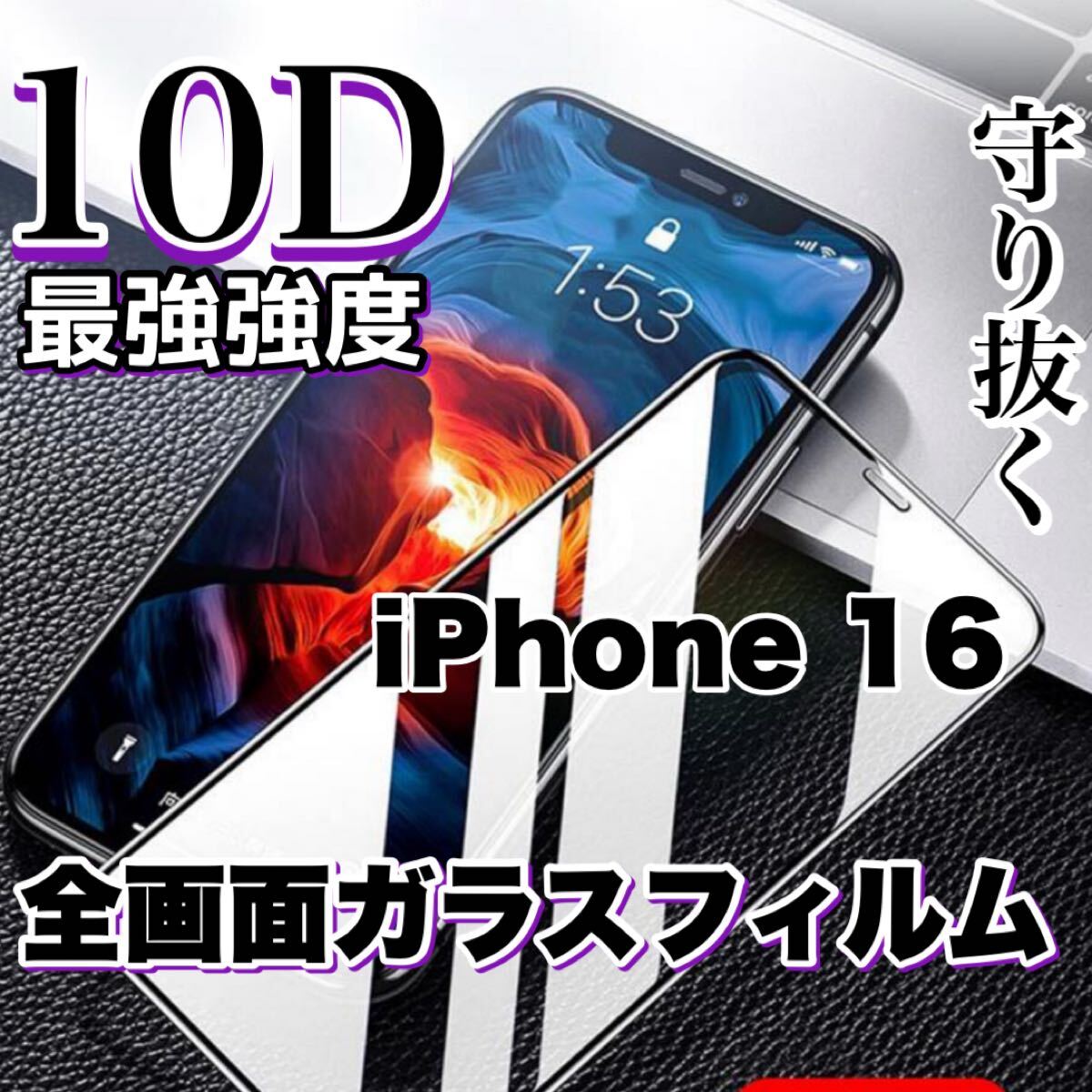 自分愛用!最強強度!99%超透過フィルム!【iPhone16】最強強度10D全画面保護フィルム