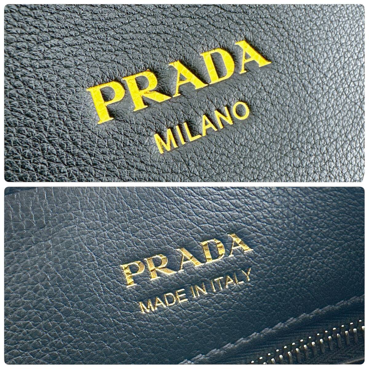 柔らかく手に馴染むレザーに、ゴールドのPRADAロゴが上品に映える逸品。