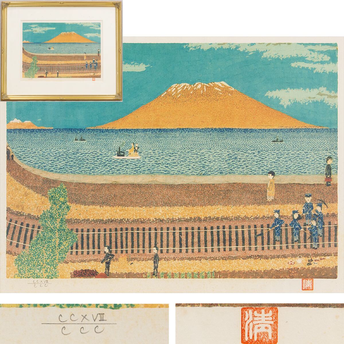【真作】山下清 リトグラフ 桜島 額装 絵画