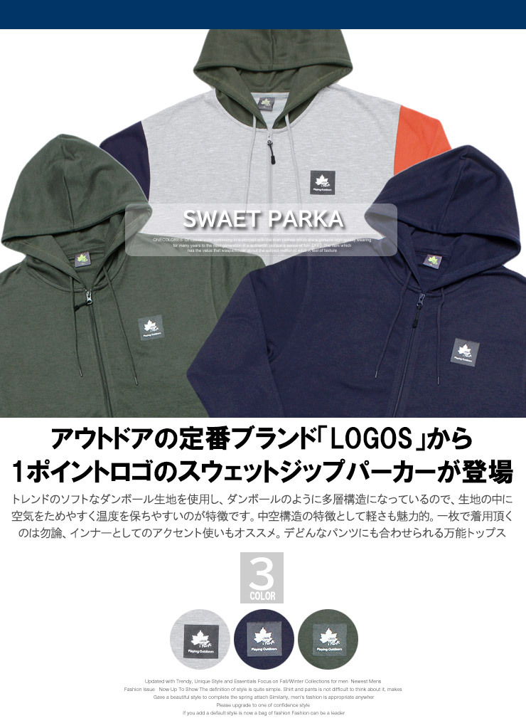 | 商品説明 | アウトドアの定番ブランド「LOGOS PARK 」から、胸にロゴプリントをあしらったフルジップタイプのパーカーの登場です。 |