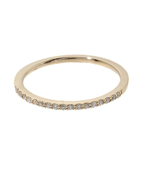 アガットのK10リング一見普通のハーフエタニティリングですが、ぎゅっと集まりすぎないように、石と石の間に地金のポイントを配置し、他のリングと重ねたときに相性がよくなるようにデザインしています。重ねて付けることで、存在感が増し、付けこなしが決まります!ラインに動きのあるデザインのリングも一緒につけると一気に洗練されたコーディネートに。