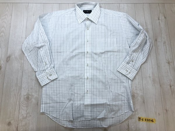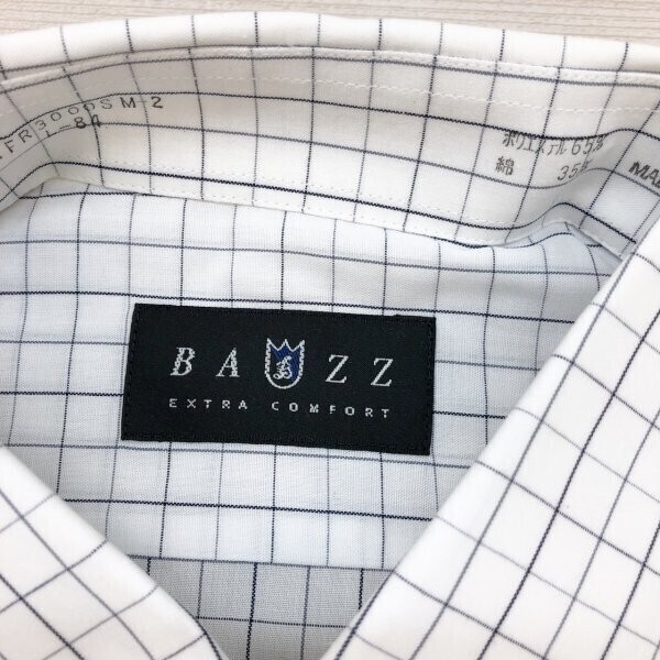 訳あり新品!BAZZ メンズ グラフチェック 胸ポケット 長袖シャツ L-84 白黒 です。