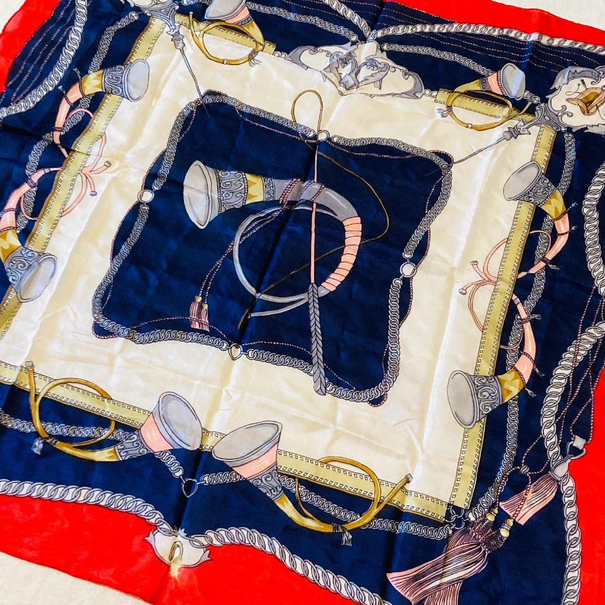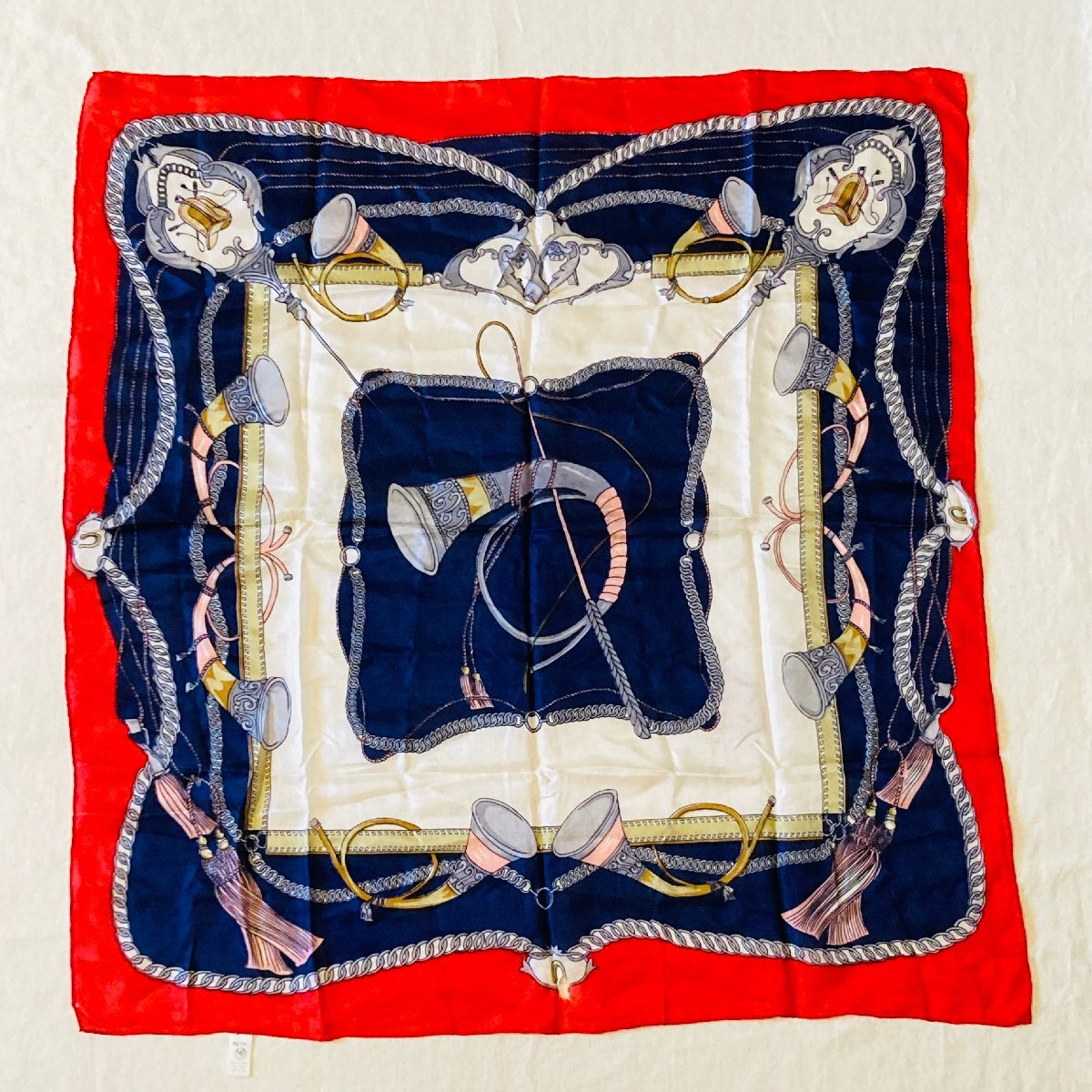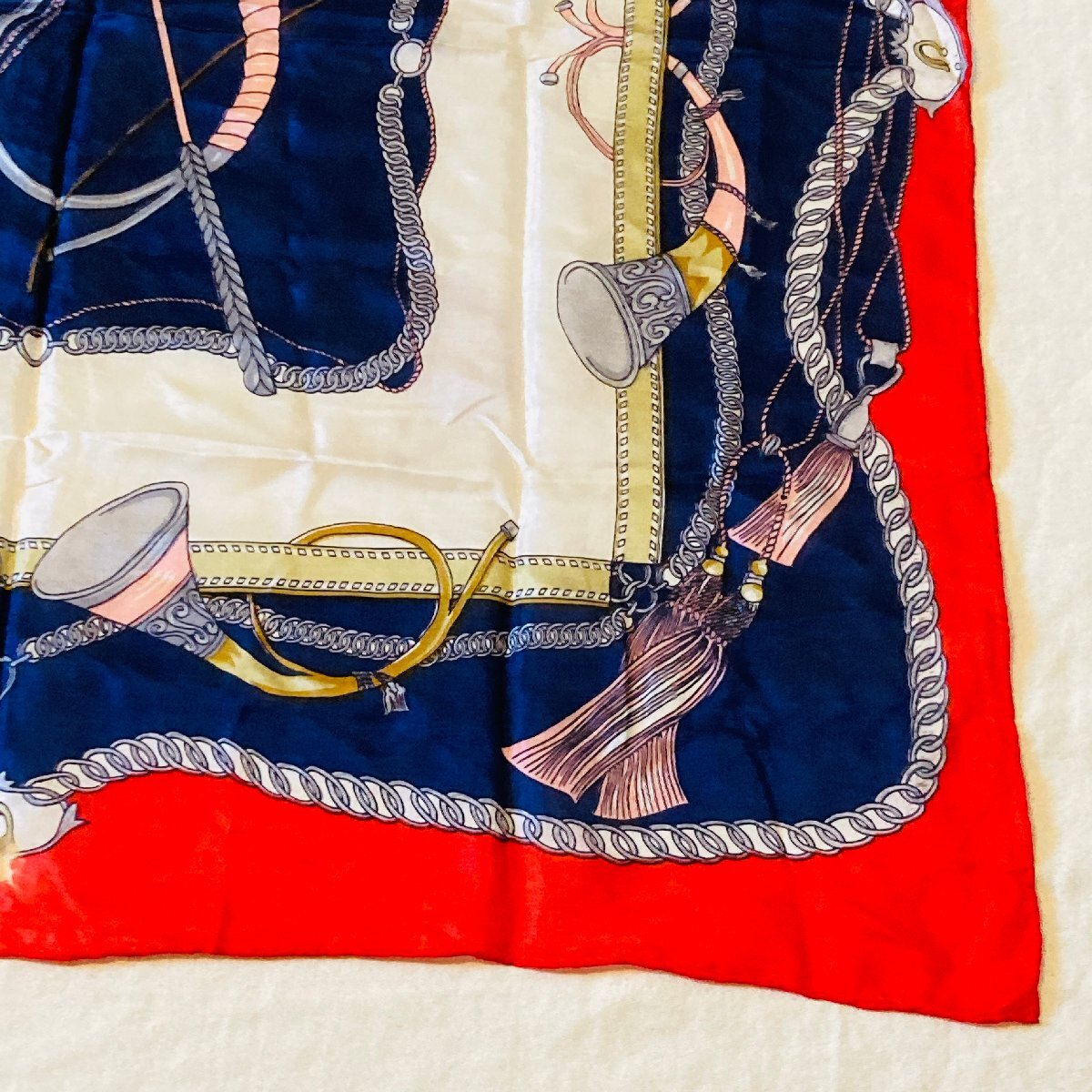 MEDAL 絹 シルク/SILK 100% レディース 大判 スカーフ バッグスカーフ レッド/ブルー/ホワイト系
