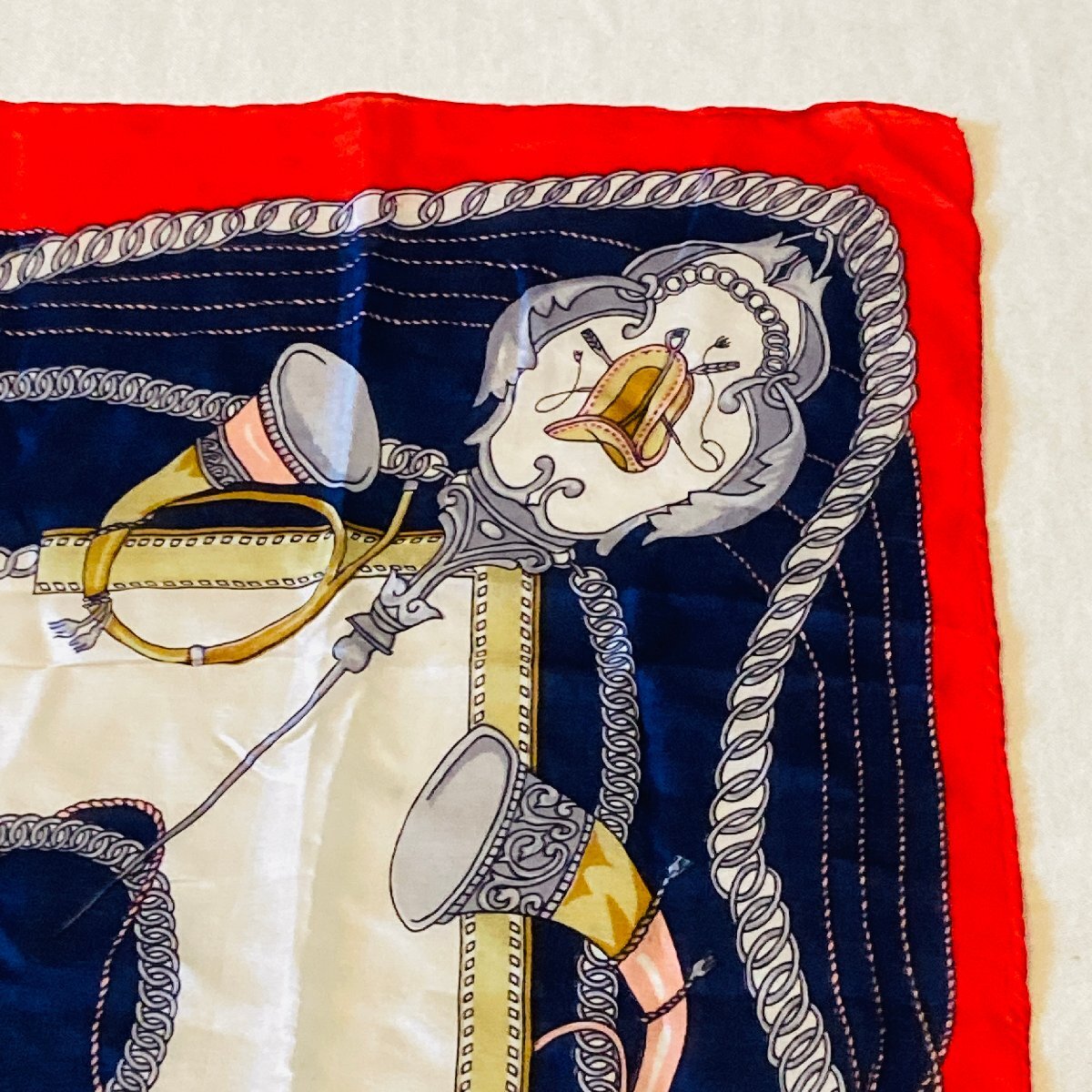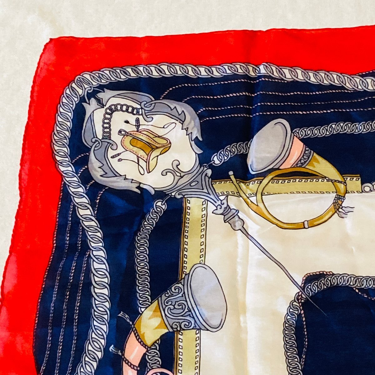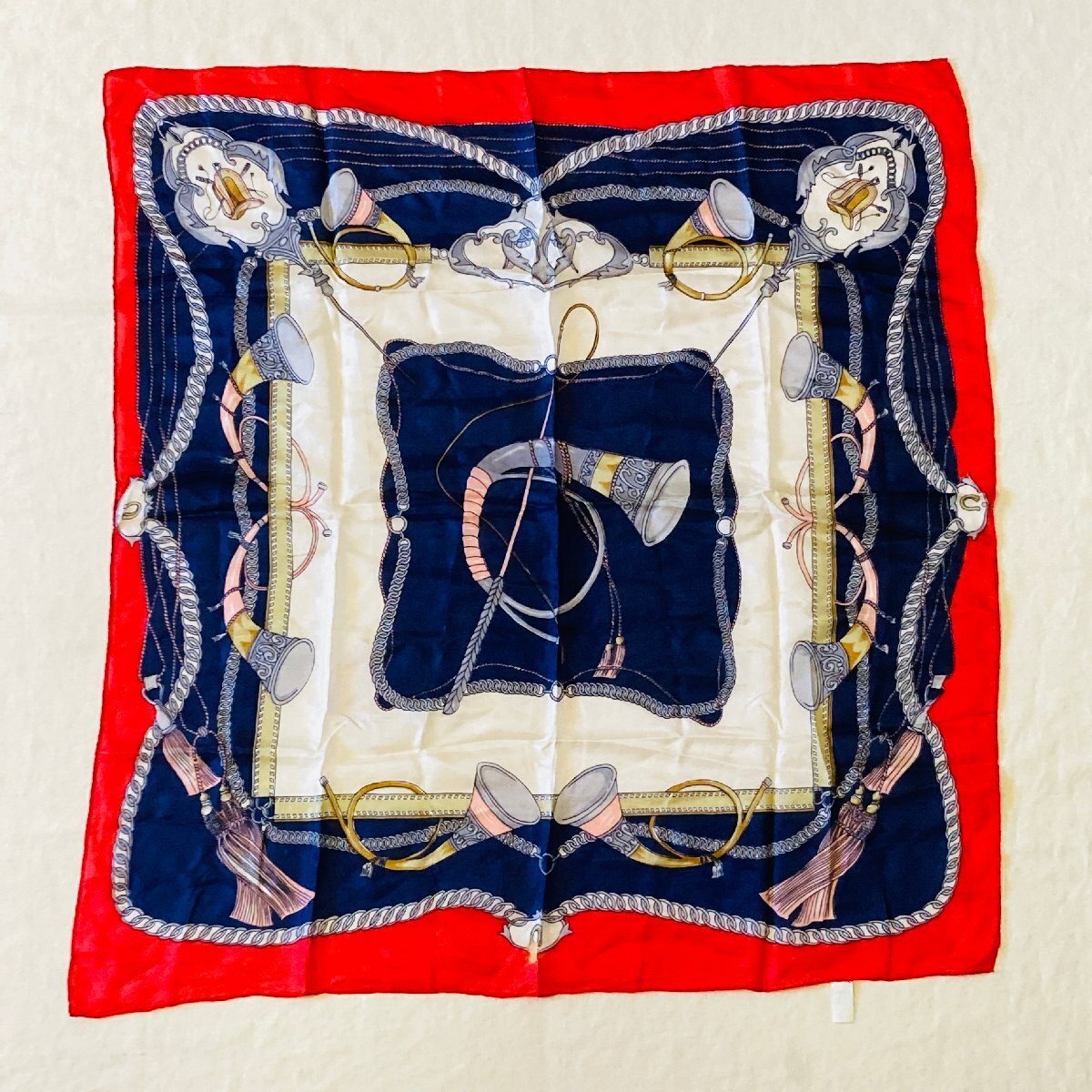 MEDAL 絹 シルク/SILK 100% レディース 大判 スカーフ バッグスカーフ レッド/ブルー/ホワイト系