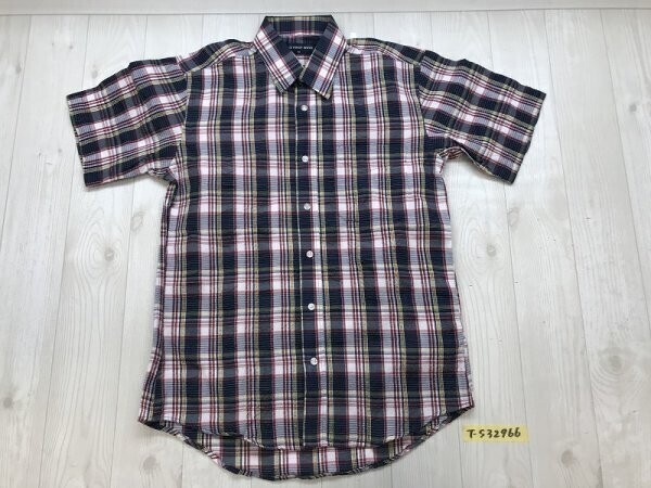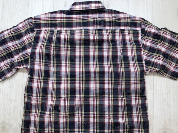 THE FIRST WAVE メンズ チェック柄 シアサッカー 半袖シャツ M 紺赤白 です。