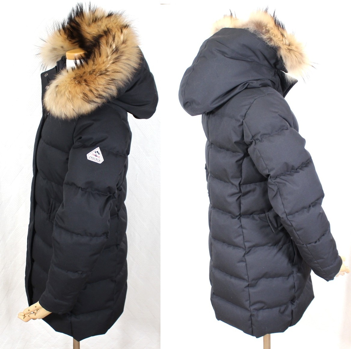 | カラー | ブラック 表地:ポリエステル 100% 裏地:ナイロン 100% 詰物:ダウン 90%&フェザー10% 毛皮部分 タヌキ(フィンラクーン) |