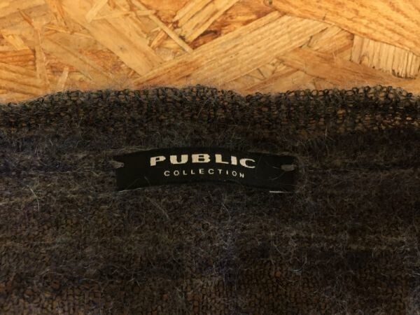 PUBLIC COLLECTION パブリックコレクション インポート ジャガードボーダー グランジ モヘアニット カーディガン レディース 薄手 40 紺です。