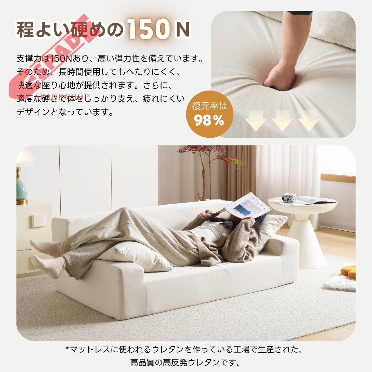 • 【高反発ウレタンフォーム】25Dの高密度海綿を使用しており、優れたクッション性と快適な座り心地を実現できます。長時間座っていても疲れにくいデザインです。また、座面や肘掛けのサポート力は120Nで、横になる時、しっかりとしたサポートを提供し、体に優しくフィットします。頭から、背、足まで、体全身の圧力を均一に分散します。