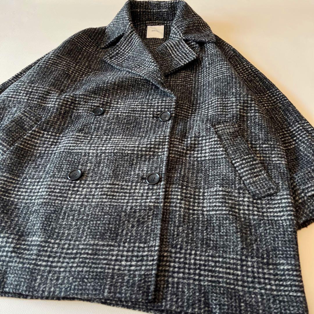 美品スピックアンドスパン Wスライバーチェックハーフコート Spick&Span コート GRY 大きいサイズ