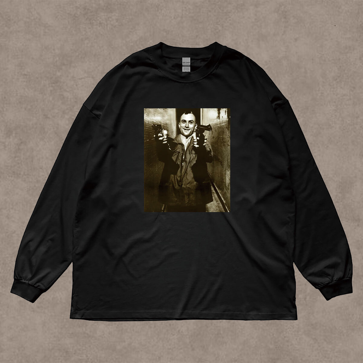 タクシードライバー ロバート デニーロ フォトプリント リブ付き 長袖 Tシャツ ロンT 6oz コットン100% キレイめ カジュアル クロ L