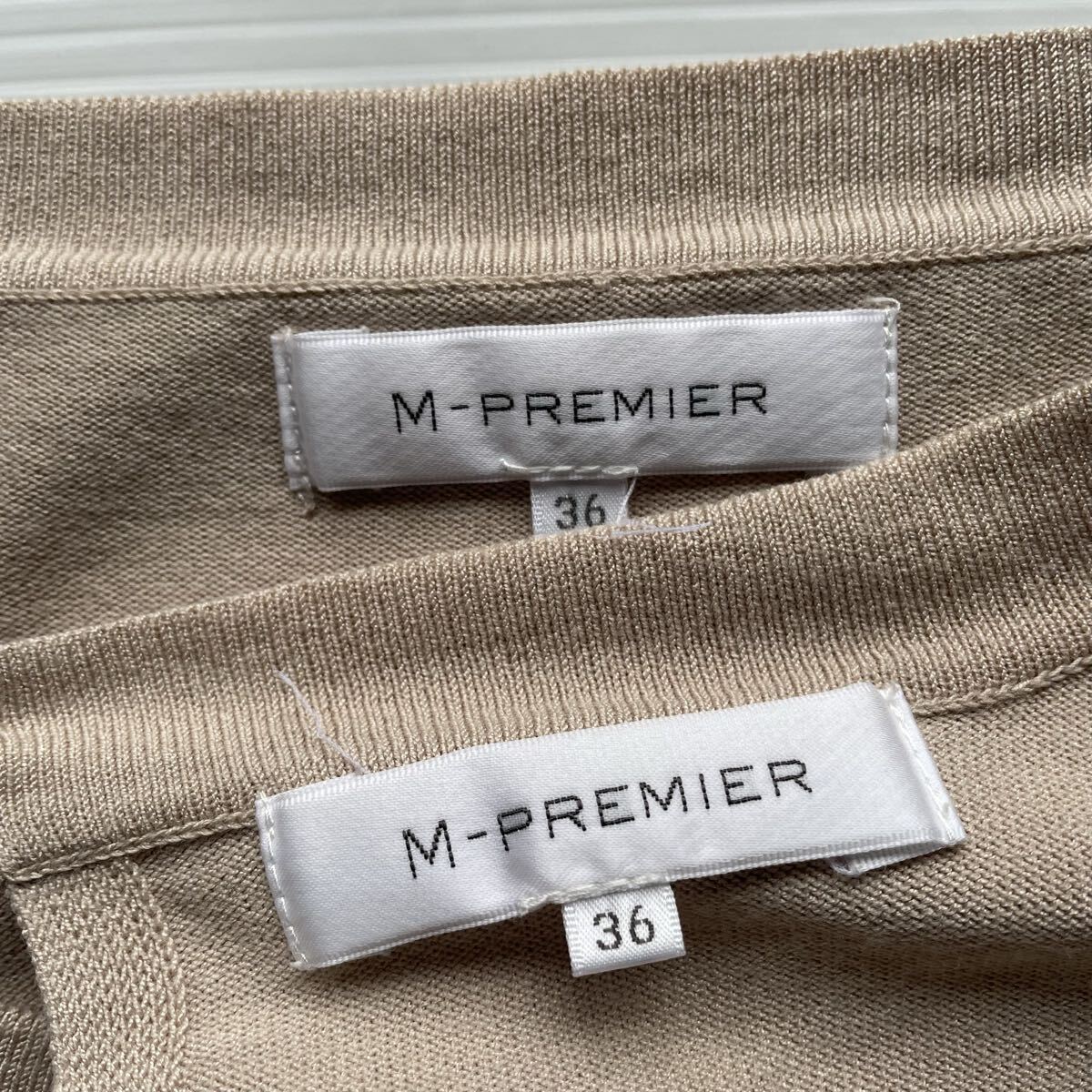 M-PREMIER エムプルミエ アンサンブル カーディガン 半袖 グレー ベージュ 36 1033