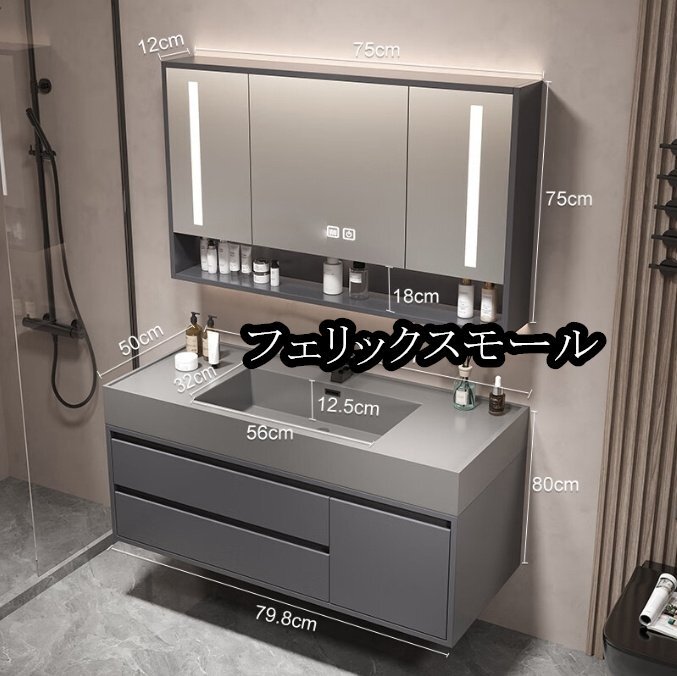 洗面台 洗面化粧台 小さな洗面化粧台 ミラーキャビネット シンク化粧台キャビネット付き洗面化粧台 モダンなアンダーマウント (80cm)