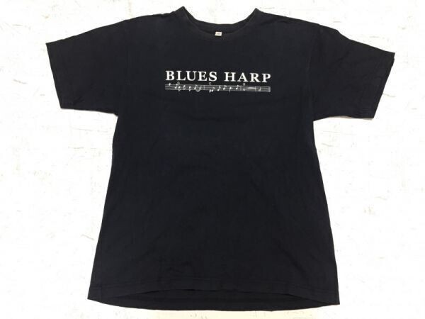 ユニクロ UNIQLO 半袖Tシャツ メンズ 音符 楽譜 ブルースハープ ハーモニカ アート ART 楽器 M 黒です。