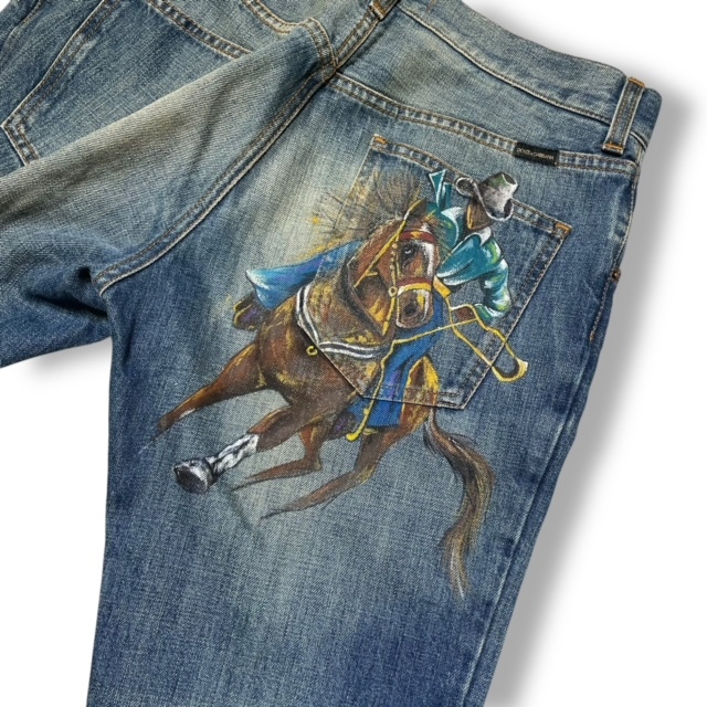 | 【サイズ】 ・表記 ・ウエスト 約80cm ・股上 約31cm ・股下 約81cm ・裾幅 約19cm 【カラー】 ・ブルー 【商品状態】 ・一般的な中古品の状態 |
