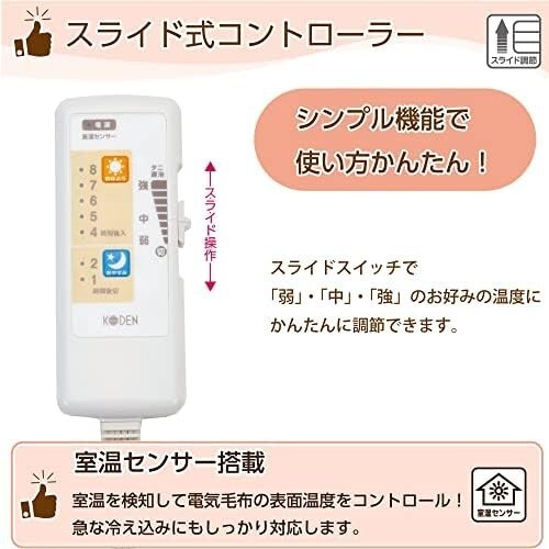 広電(KODEN)電気毛布 敷き 130×80cm ブラウン 洗える 抗菌防臭 おやすみおはようタイマー 室温センサー 12hOFF 温度調節 CWS403B-BG