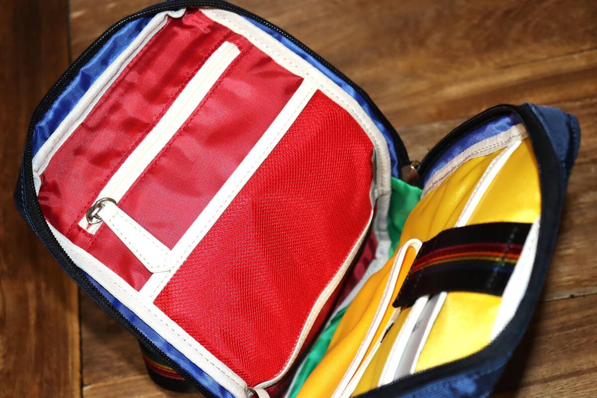【内側】メッシュポケット×1・ファスナーポケット×1・マジックテープ式ポケット×1・ペットボトルポケット×1