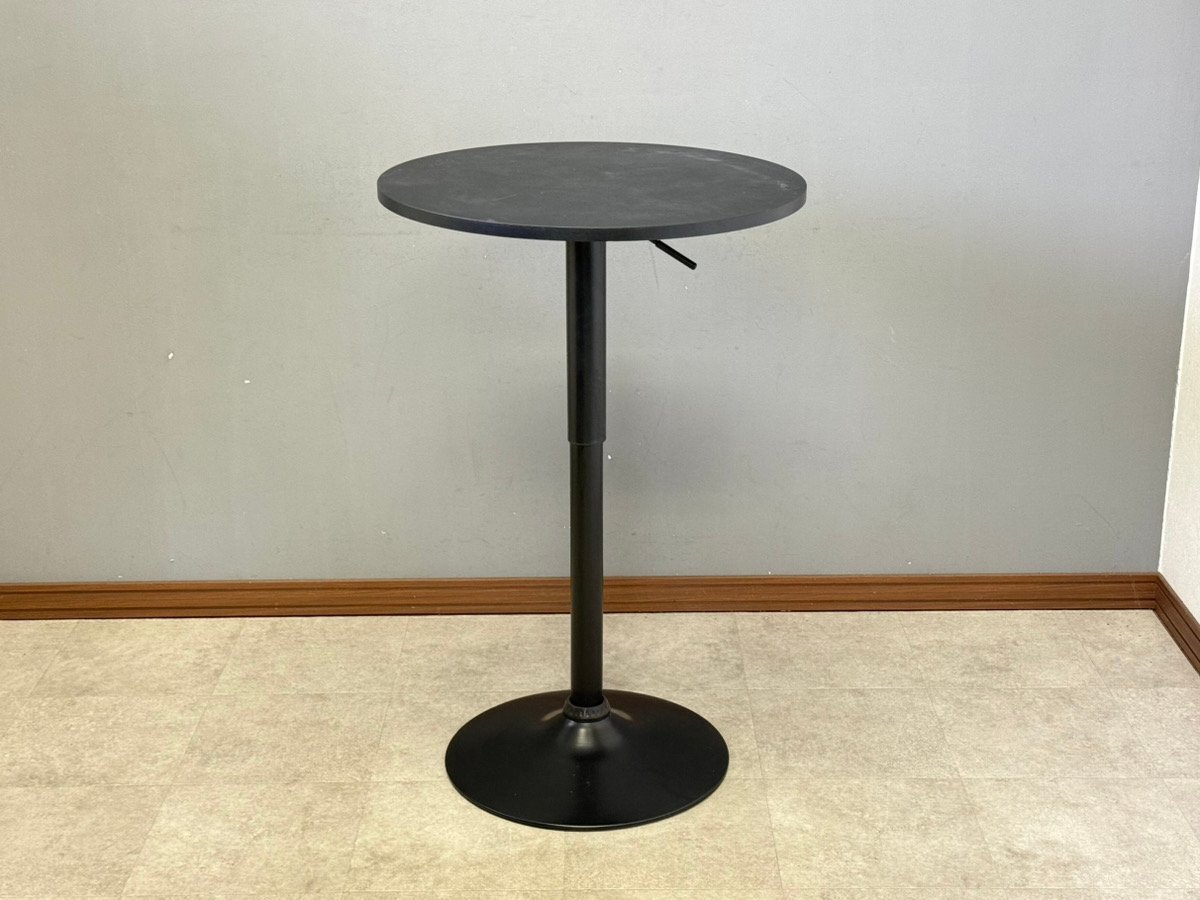 | 【中古/動作良好】250609002- 昇降式バーテーブル ブラック 黒脚 組立式 BT-01A カウンターテーブル おしゃれ 丸テーブル 回転式 カフェテーブル |