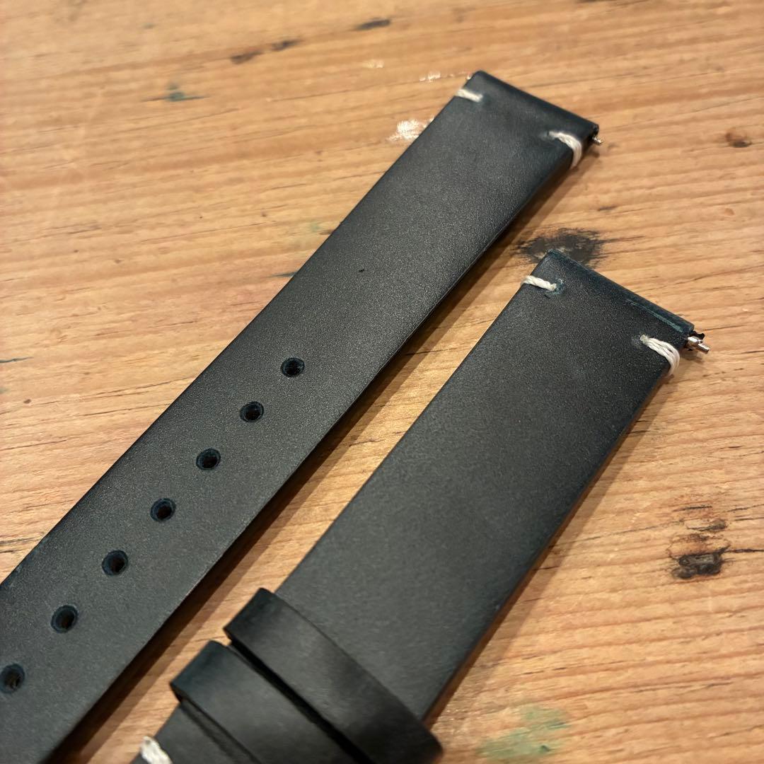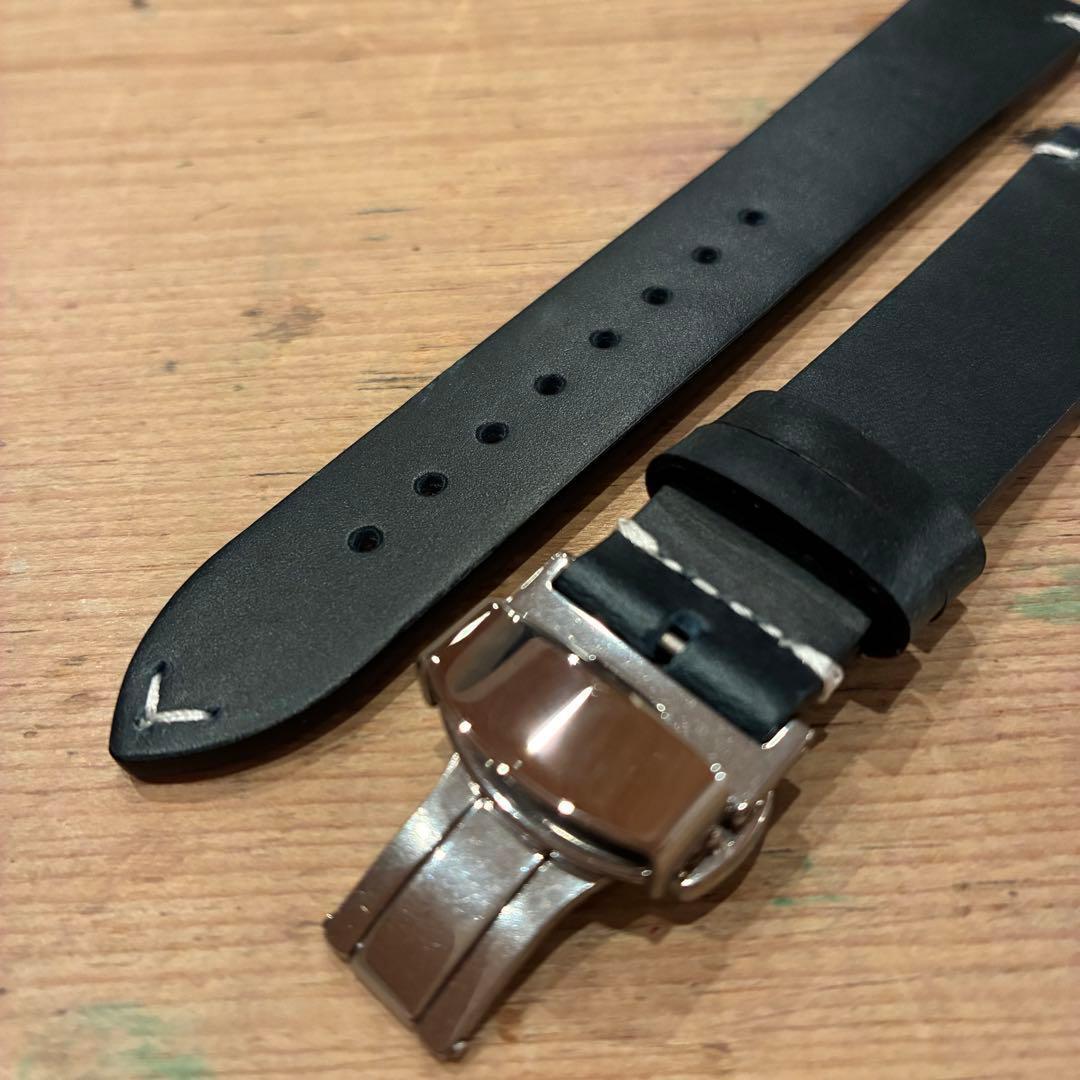 Dバックル付【ハンドメイド オイルレザー】時計ベルト ブルー 18㎜