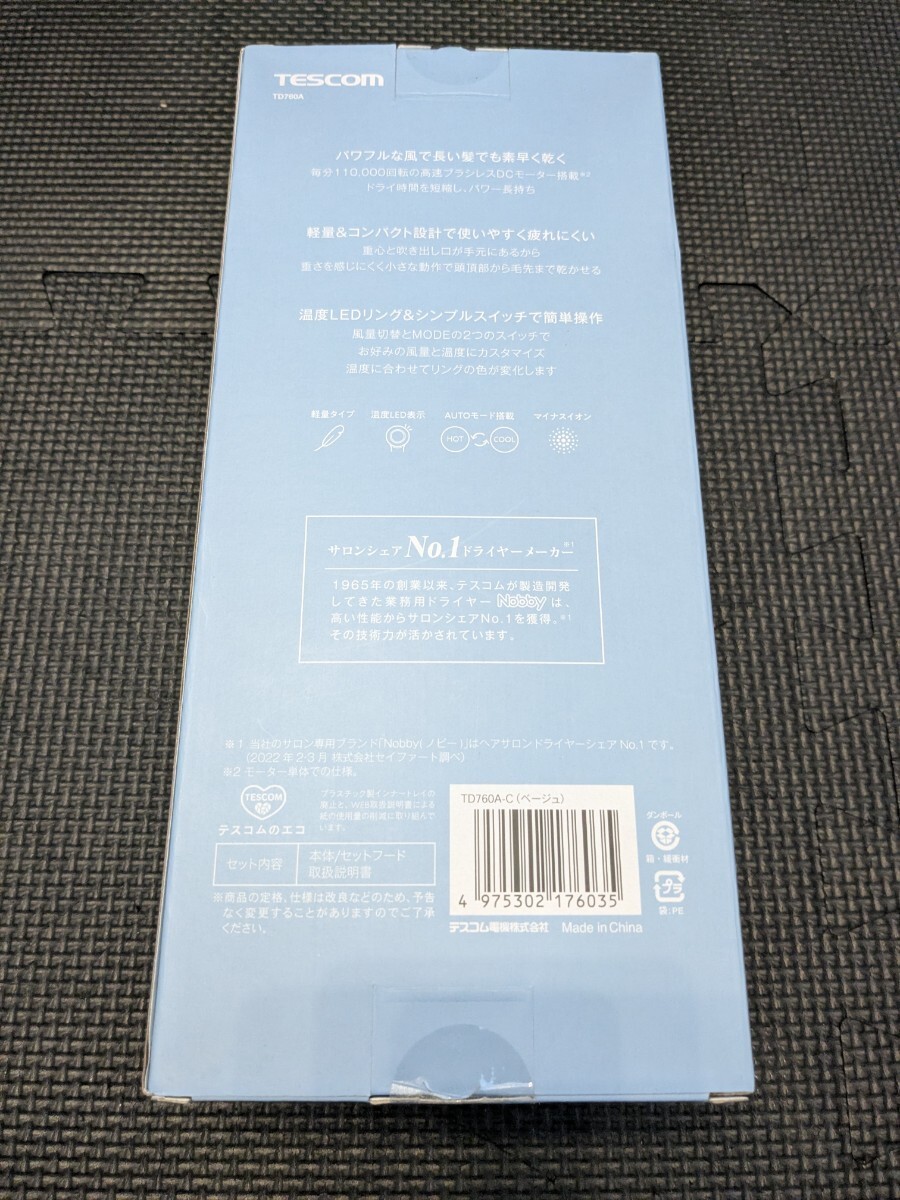 ◎0711u1318 テスコム ヘアドライヤー I字型 マイナスイオン 軽量 コンパクト 冷温風 静音 ラク抜きプラグ ベージュ TD760A-C