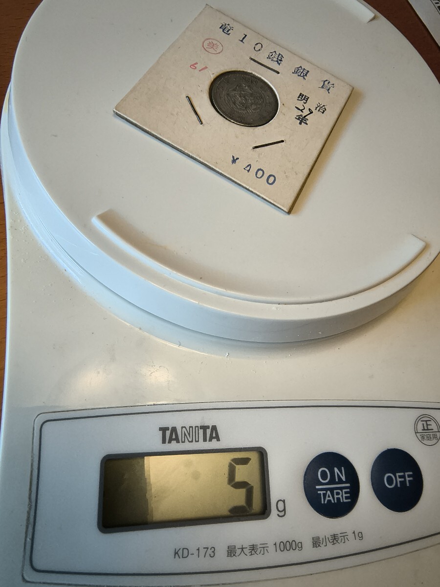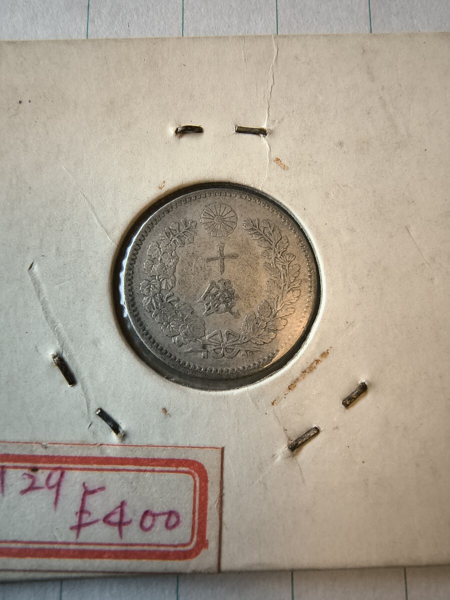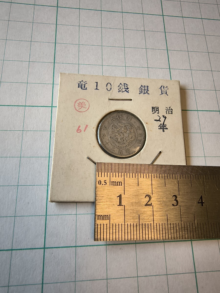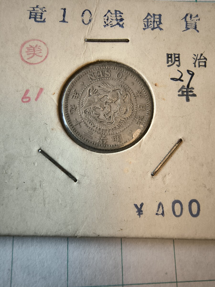 祖父のコレクションです。購入したままのパッケージです 明治29年 竜10銭 銀貨と記載しています