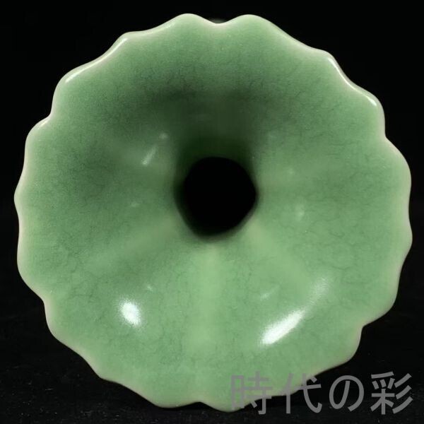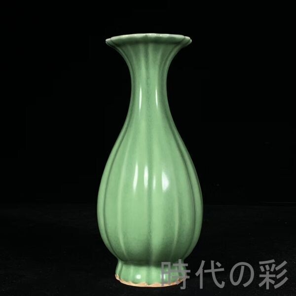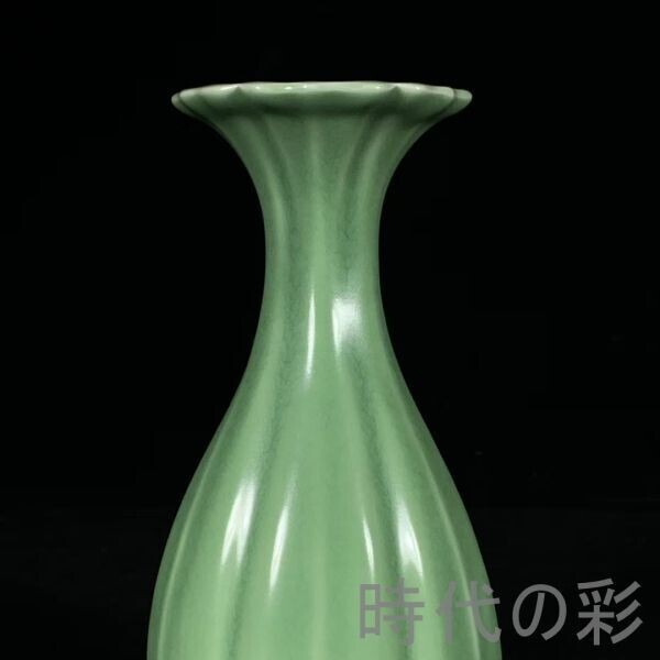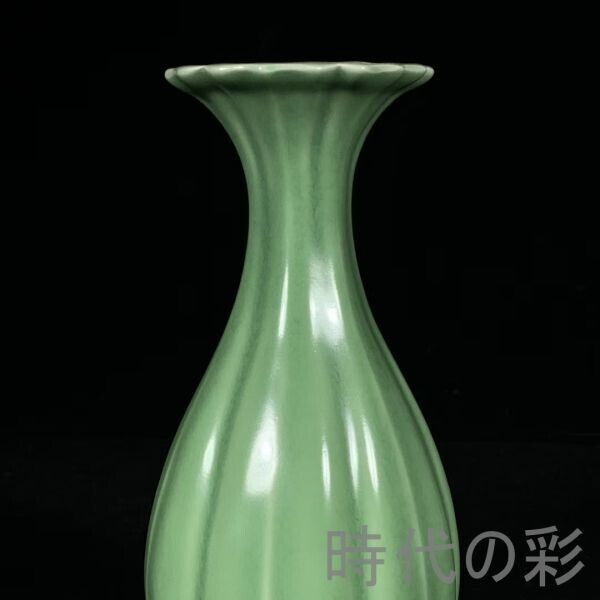 【美の継承】中国古美術 宋代 龍泉窯 梅子青釉 瓜形瓶 花瓶 文房置物 茶道具 青磁 珍品旧蔵 古賞物 文房置物 古玩 時代物 R07101133