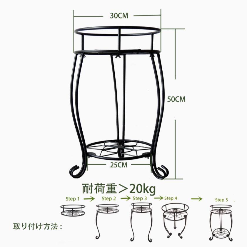耐荷重20kg以上の頑丈仕上げのお洒落な花台です。室内に使っても屋外に使ってもアンティーク感やジャンクな風合いを演出します。プラント-スタンドの防錆コーティングを厚くし、より錆びにくく。プランタースタンドの高さは50cm、1段目の幅は25cm、2段目の幅は30cmです。