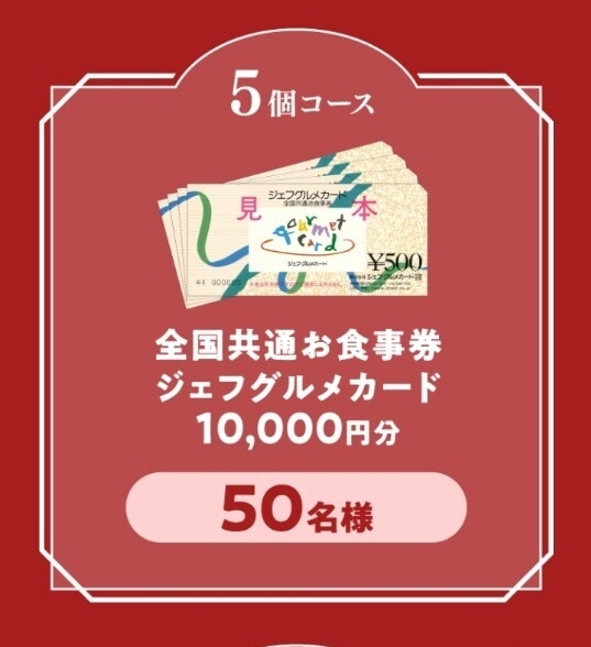 全国共通お食事券 ジェフグルメカード10000円分 50名様