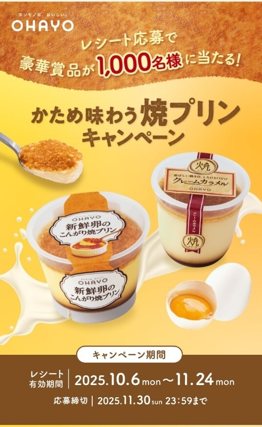 オハヨー かため味わう焼プリンキャンペーンに応募できるレシート1枚(対象商品5個購入)の出品です。発送はレシートのみ