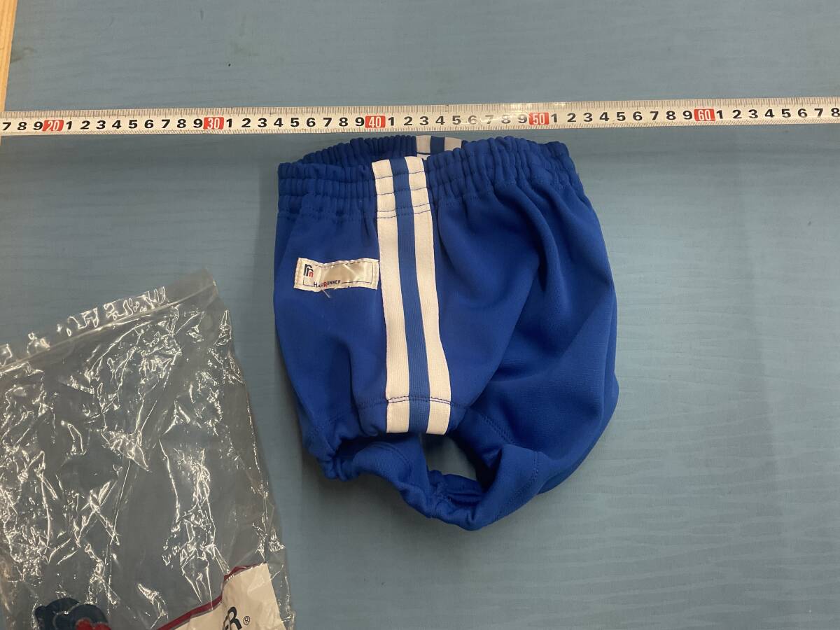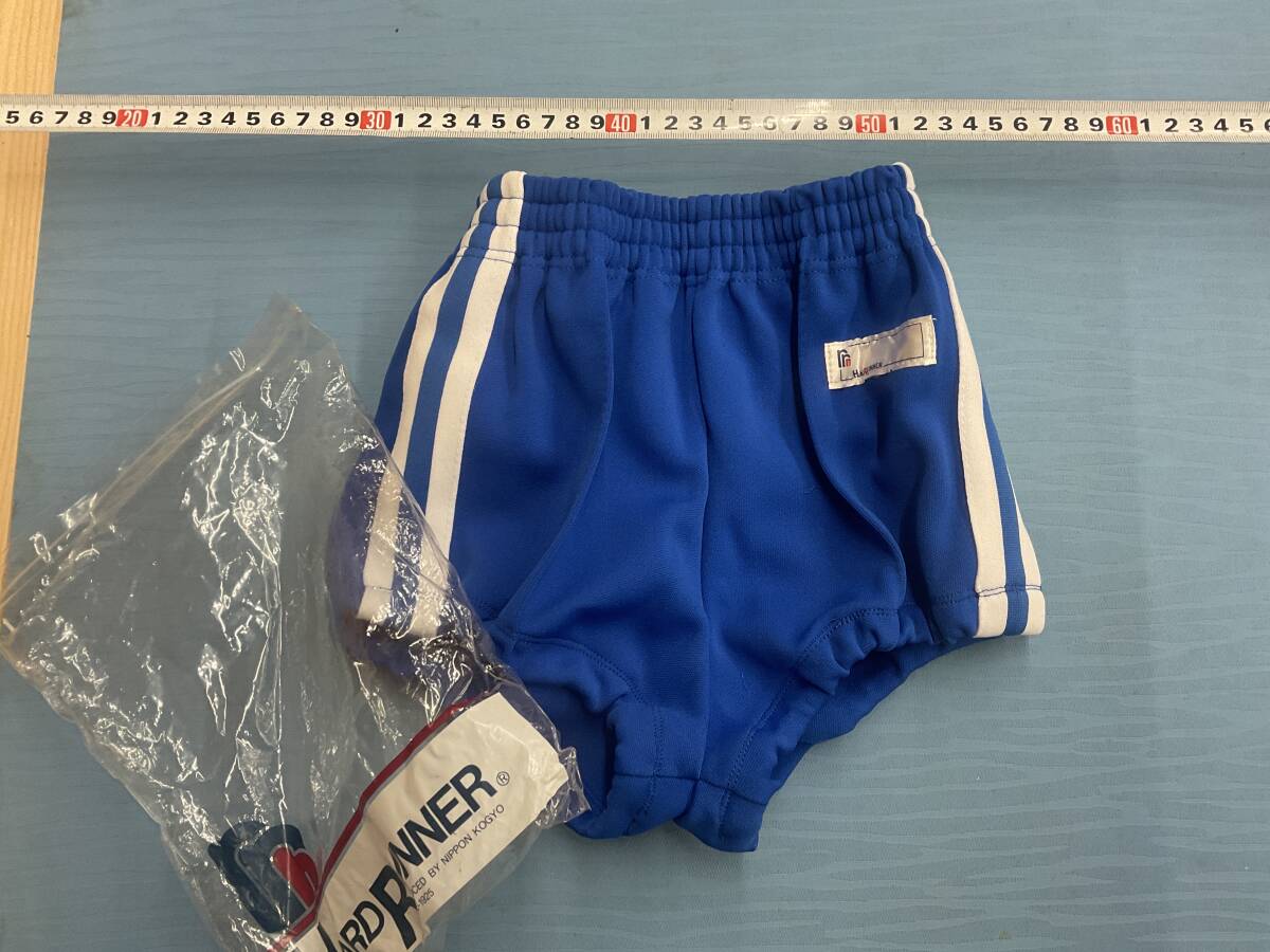 ハードランナー 体操着 体操服 M 位 ブルマ ブルー 青 × 白 2本 ライン レトロ ブルマー ポケット 付き 部活 特注品 袋付き