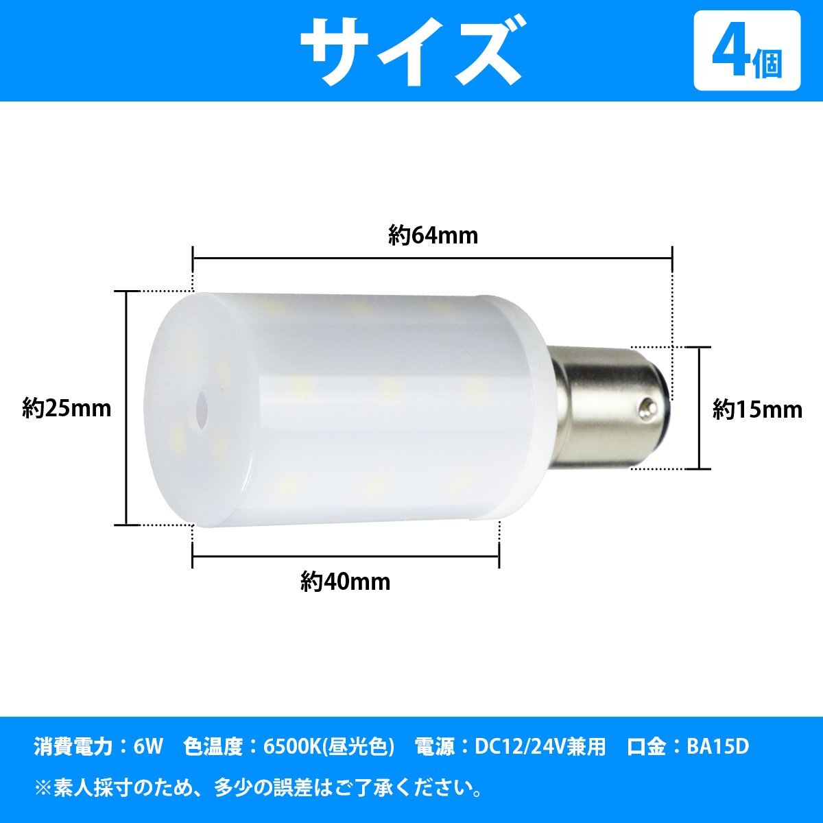 [4個set]BAY15D 6W 12v 24V 兼用 LED バルブ 段違い マリン用 船 ボート 船舶 ヨット 航海灯 6500K 白 ホワイト 防水 電球