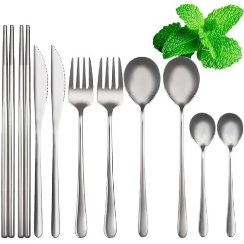カトラリ カトラリーセット 10本セット 箸 ナイフ フォーク スプーン 2名用 ディナーカトラリーセット チタンコーティング ステンレス鋼 鏡面仕上げ 食洗器対応 多色有り キッチン cutlery set 結婚式用 プレゼント ギフト (カトラリ銀10本+日本の食品安全認証)